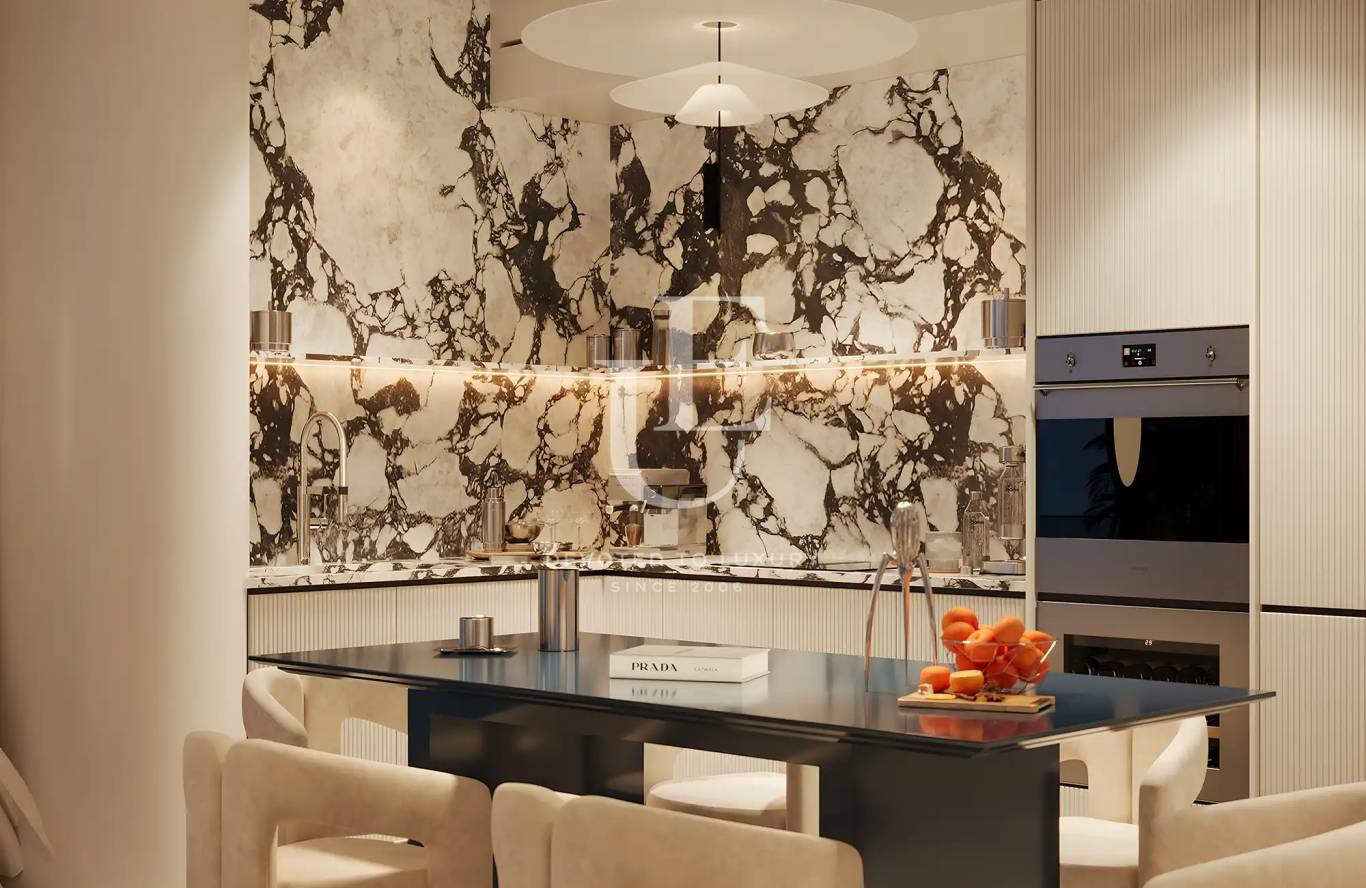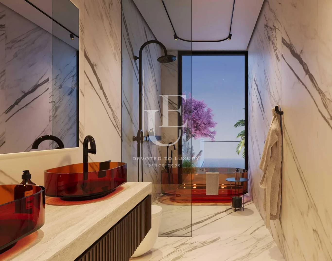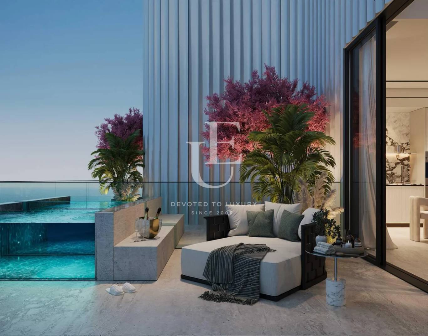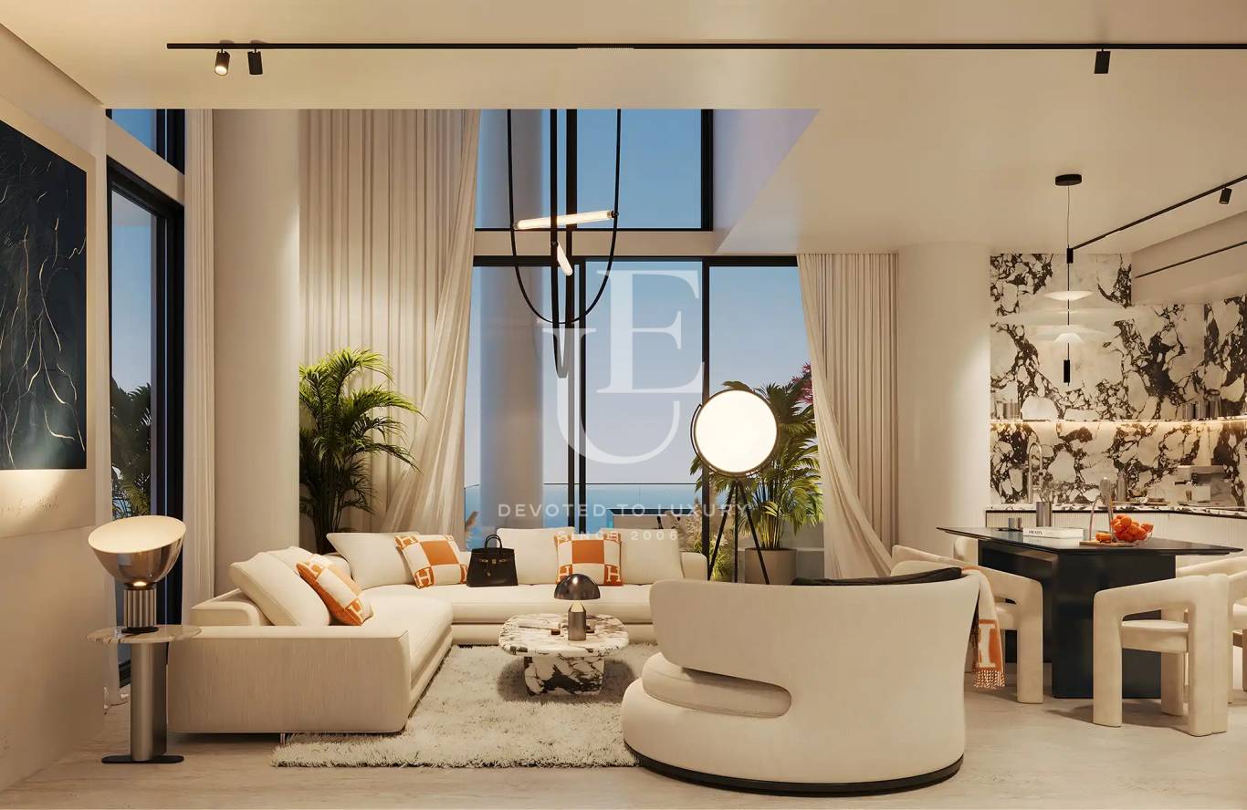 Апартаментът разполага с внимателно планирани пространства, големи прозорци и панорамни тераси, някои от които включват частен басейн, предоставяйки усещане за свобода и директна връзка с морето. Вътрешният дизайн съчетава изисканост и функционалност, с модерни материали, елегантни линии и просторни дневни зони.
