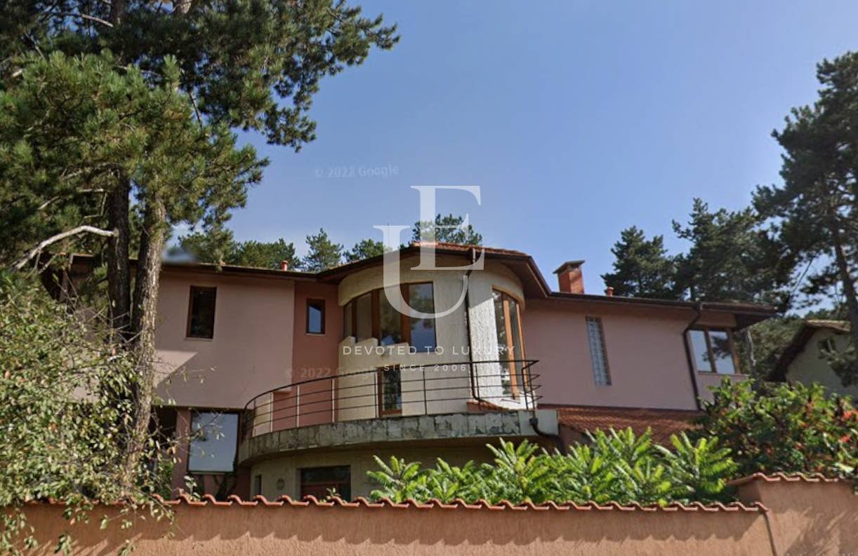 Архитектура и интериор: Къщата впечатлява със своя висок клас строителство, изчистени линии и усещане за простор. Входното фоайе води към голяма дневна зона с камина и френски прозорци, които осигуряват естествена светлина през целия ден. Кухнята и трапезарията са решени в отворен план, с плавен преход към зимна градина на две нива — перфектно място за следобеден чай или спокойни семейни вечери.