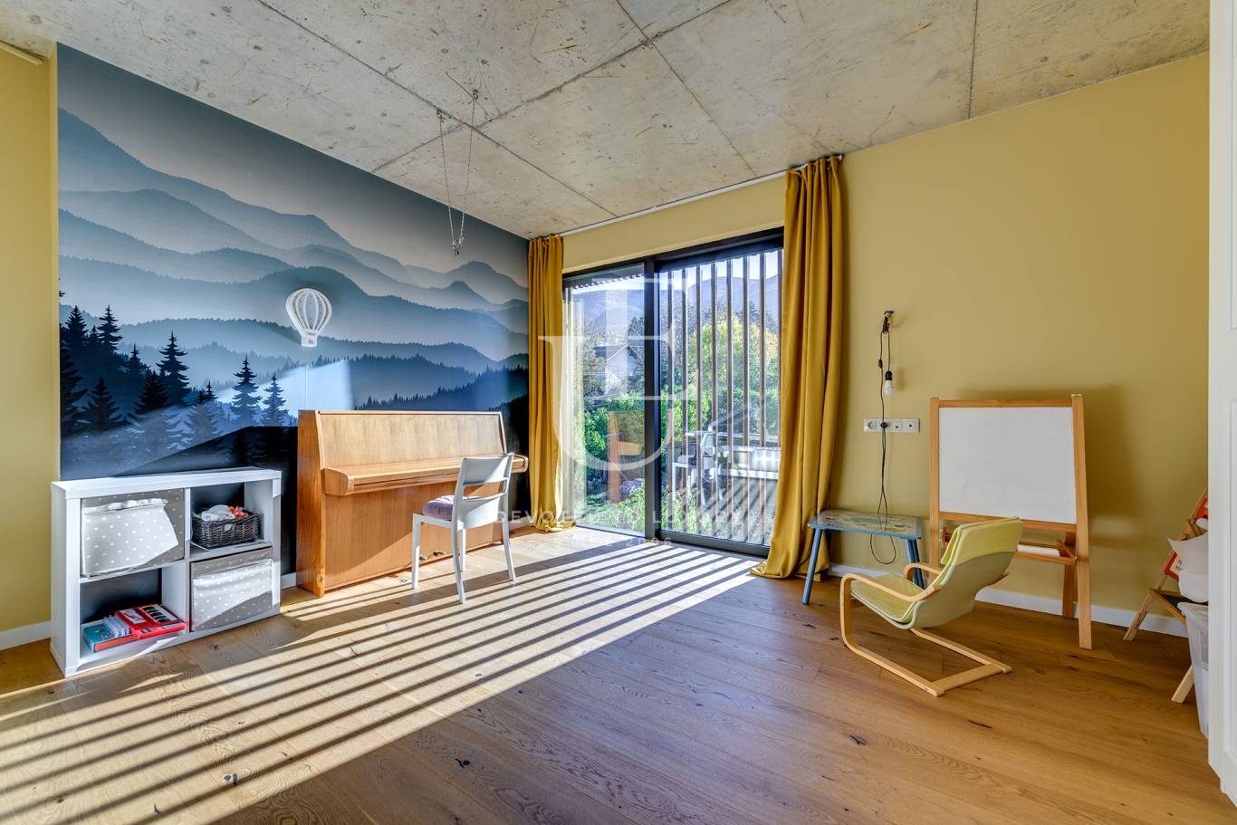 Имотът е предназначен за ценители на модерния минимализъм, естествените материали и спокойствието в подножието на планината, само на минути от динамиката на града.