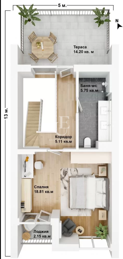 Архитектурата е съвременна, като всяка къща е проектирана с гледка към планината и града. На покривите са монтирани соларни панели, осигуряващи част от енергията за дома, а в помещенията е инсталирано подово отопление за максимален комфорт.