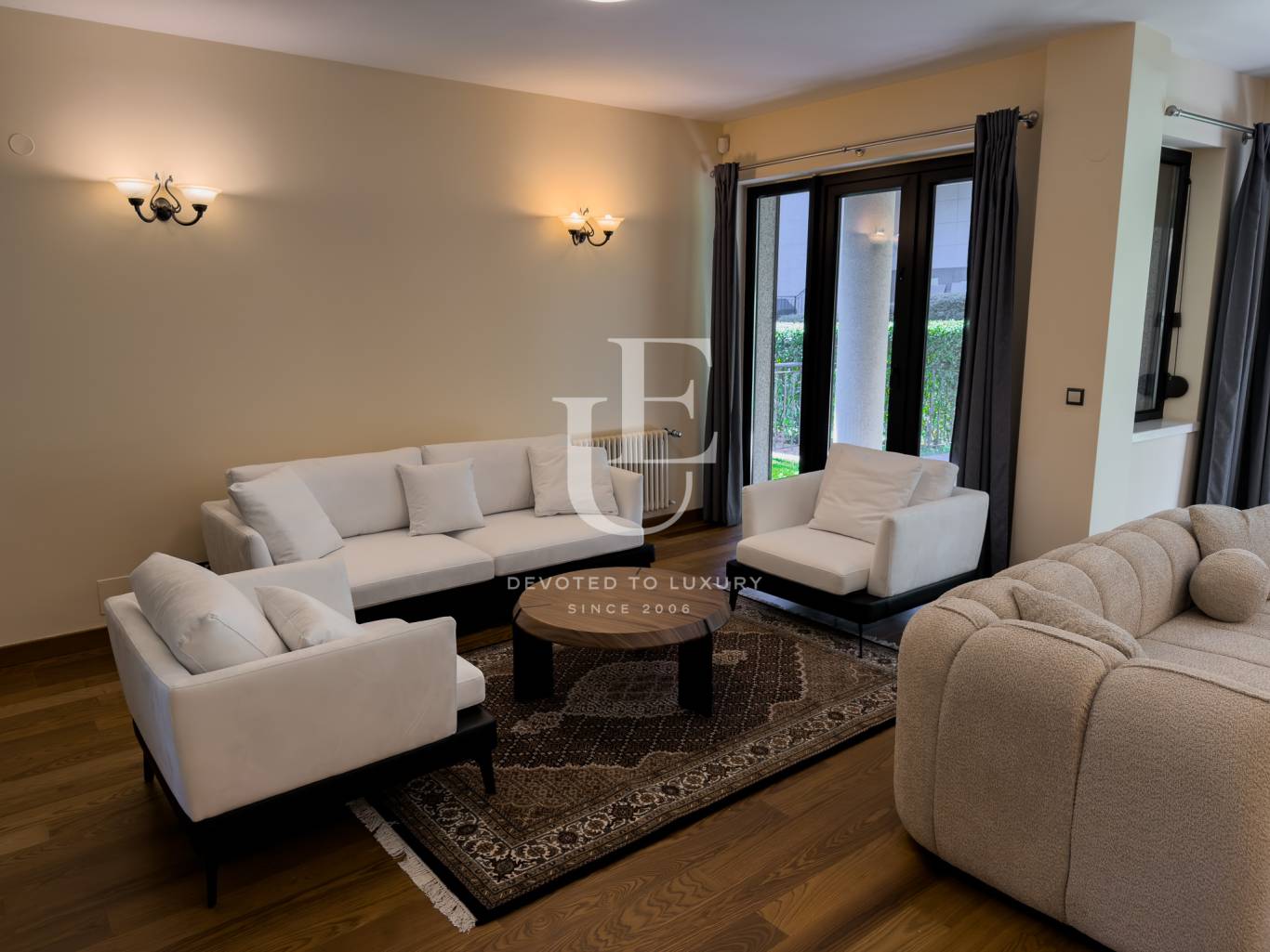 Къщата е напълно обзаведена с луксозни италиански мебели, подбрани с вкус и финес. Интериорът съчетава модерна функционалност и класически уют, създавайки усещане за хармония и комфорт. Всеки кът е проектиран така, че да предлага едновременно естетика и удобство.