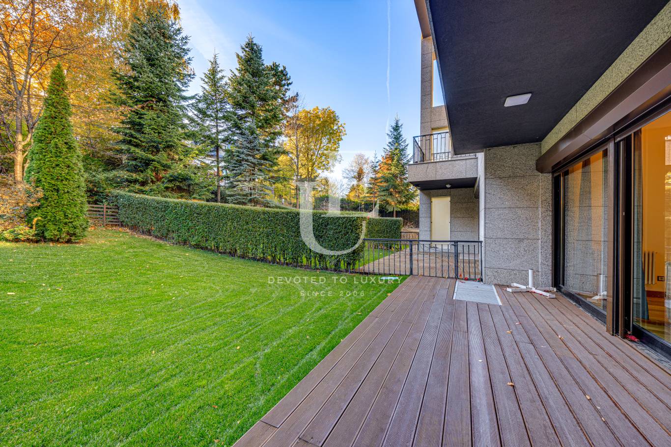 На приземното ниво са обособени няколко пространства: перално помещение, зона за персонал с баня и тоалетна, гараж за 2–3 автомобила, както и поддържан озеленен двор, в който можете да се насладите на тишината и чистия въздух на Витоша.