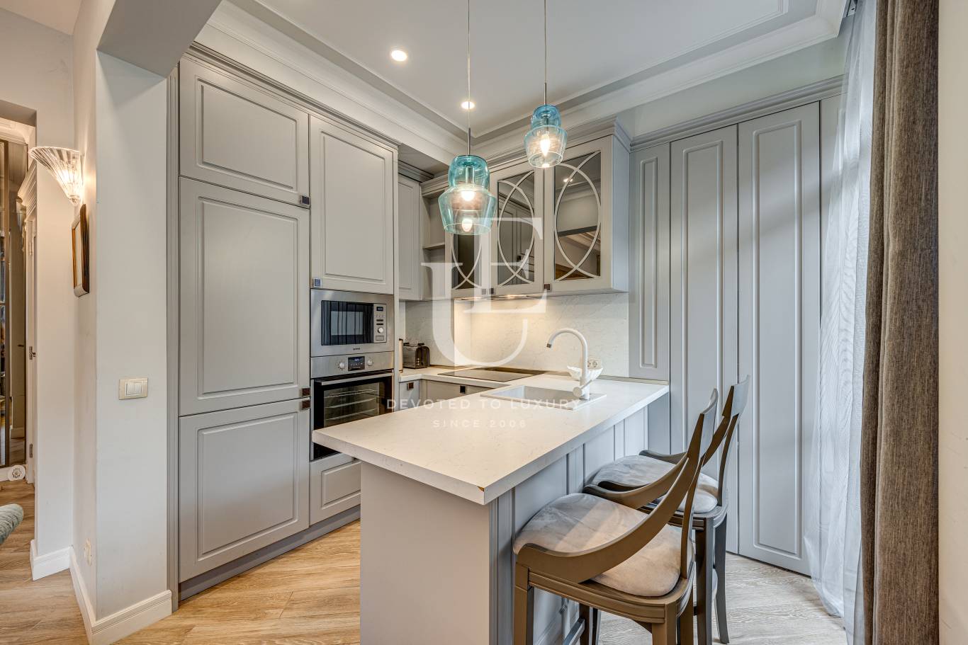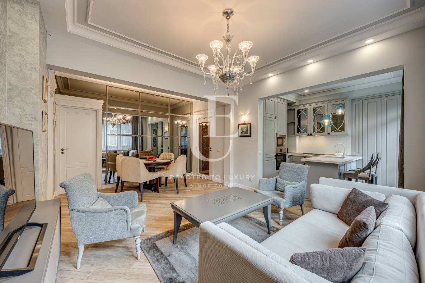 Unique Estates предлага под наем ексклузивно стилно обзаведен тристаен апартмент в добре поддържана сграда на тиха улица в непосредствена близост до градината на Докторски паметник.
