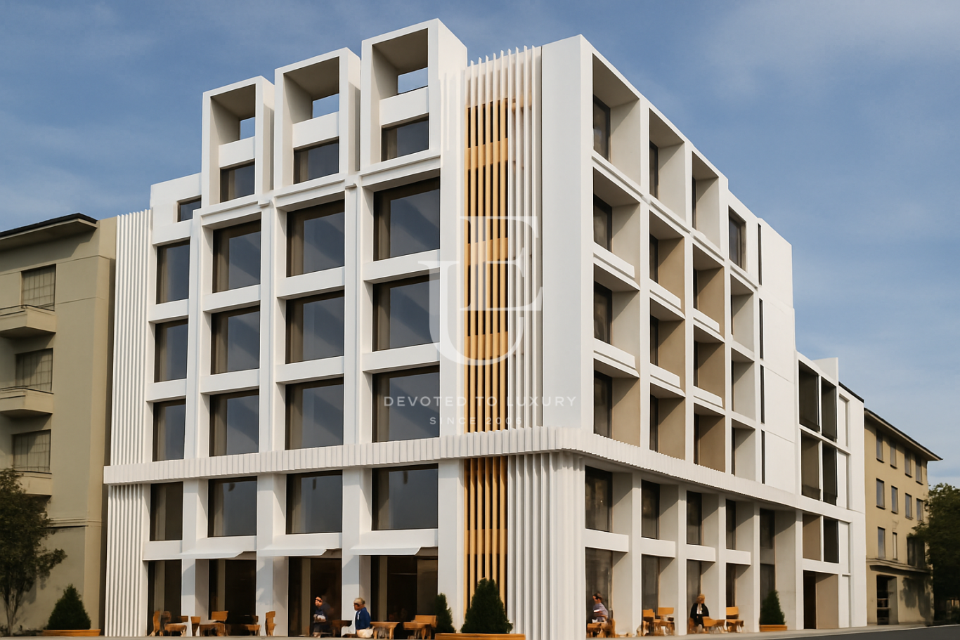 Проектът предвижда изграждане на модерна многофункционална сграда с предназначение хотел / апарт-хотел, със съвременна архитектурна визия и обща РЗП около 1 650 кв.м, с възможност за увеличаване до приблизително 1 900–2 000 кв.м след акт 16. Заложени са пет надземни етажа, партер с представително лоби и зона за кафе, възможност за 25–30 хотелски стаи, както и подземни нива за паркиране и обслужващи помещения. Проектът е съобразен със съседните сгради и уличната регулация, като фасадата е решена в изчистен модерен стил с вертикални ламели и големи витрини.