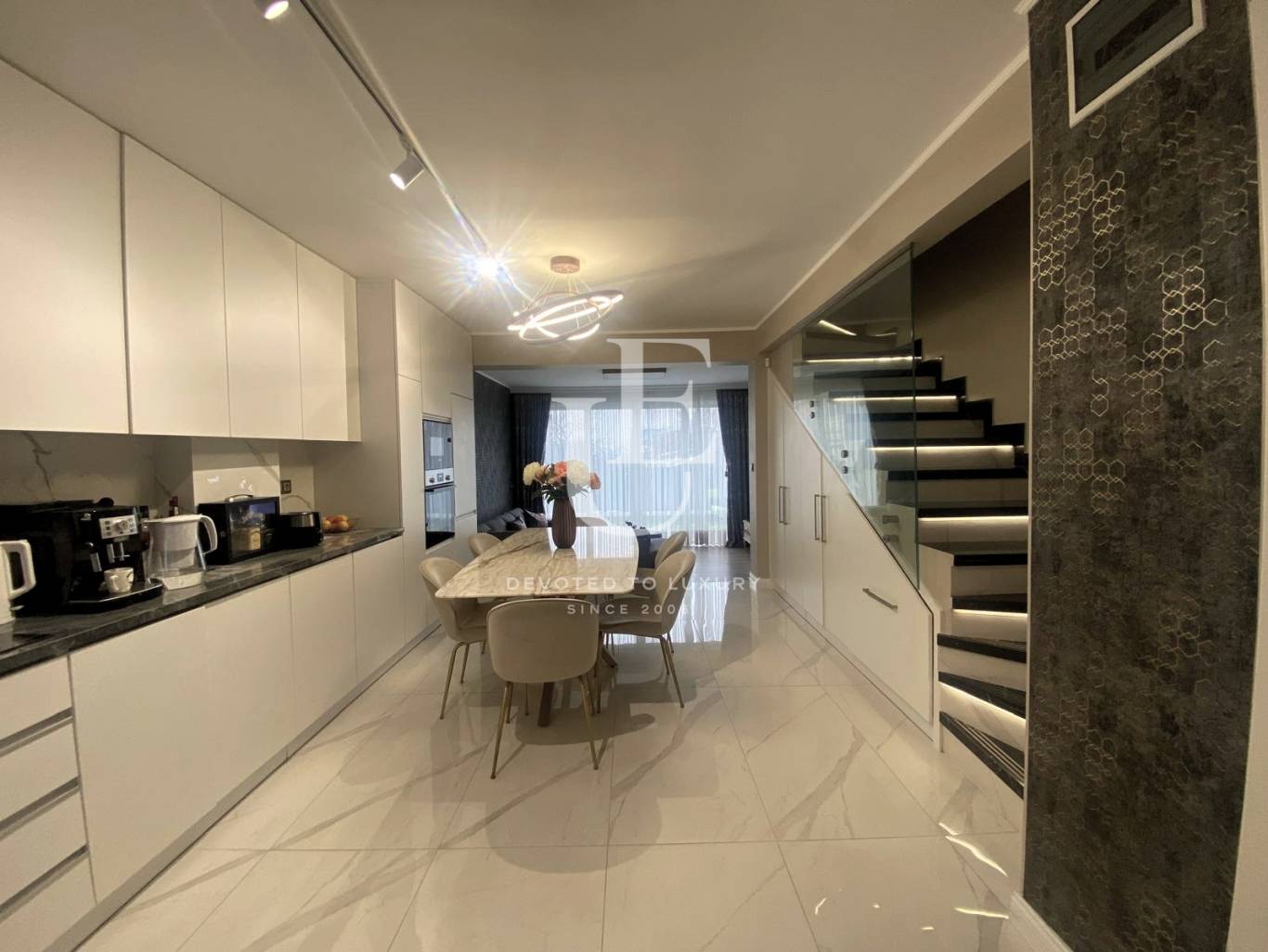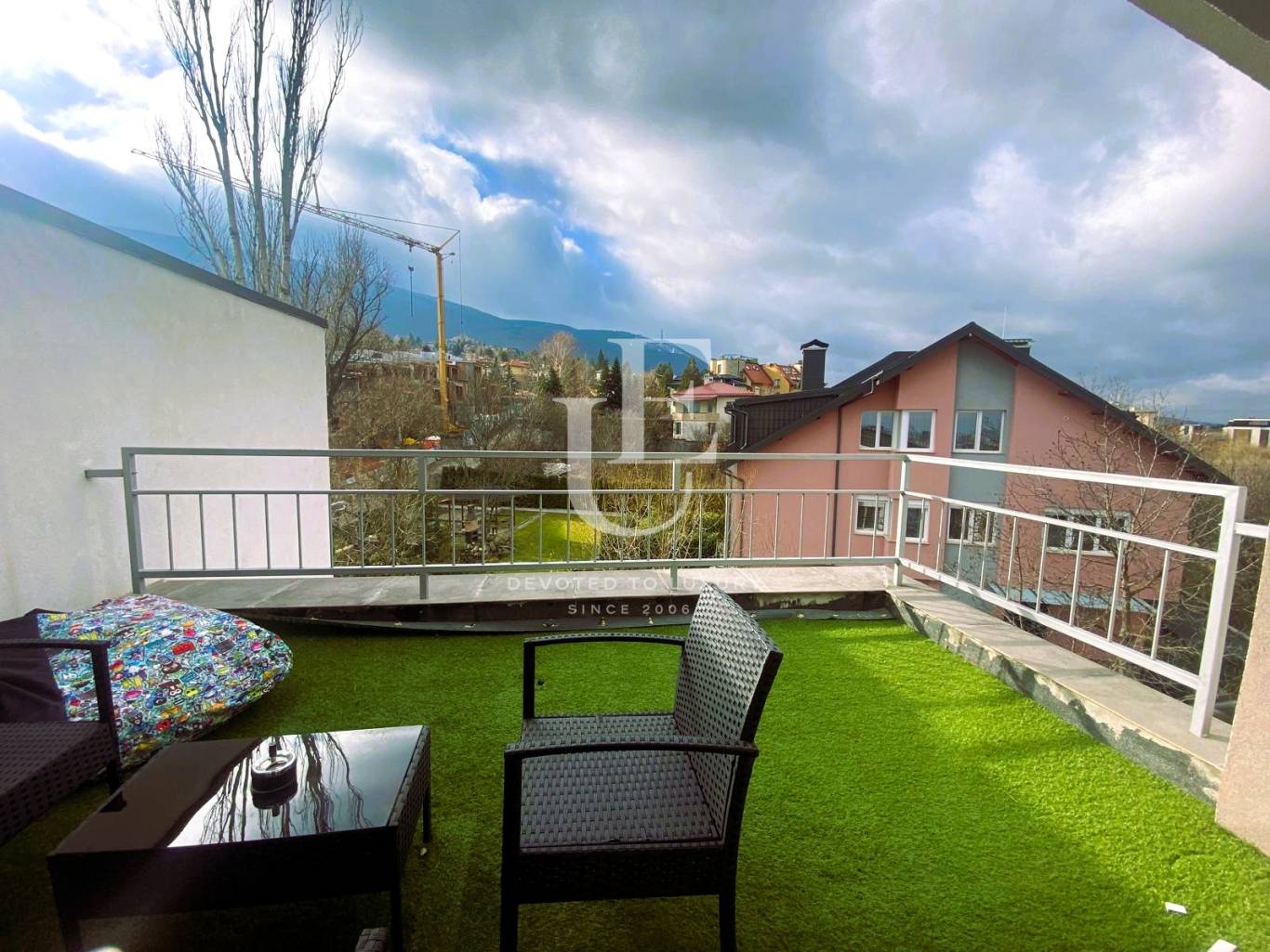 Този уютен имот е изцяло дизайнерски обзаведен, с внимание към всеки детайл и прецизен избор на висококачествени материали. Разпределена на четири нива, къщата предлага комфорт и функционалност чрез четири просторни спални и светло ателие на последния етаж. Двете тераси разкриват вълнуващи панорамни гледки към Витоша и града, създавайки усещане за спокойствие и вдъхновение.