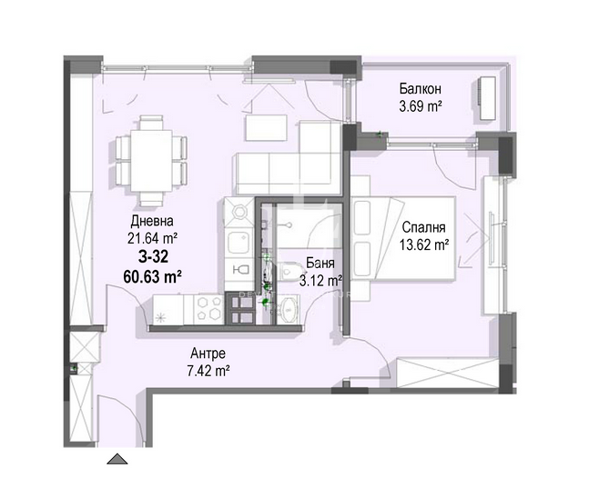 Цена: € 166 392 без ДДС (2378 € кв.м.)