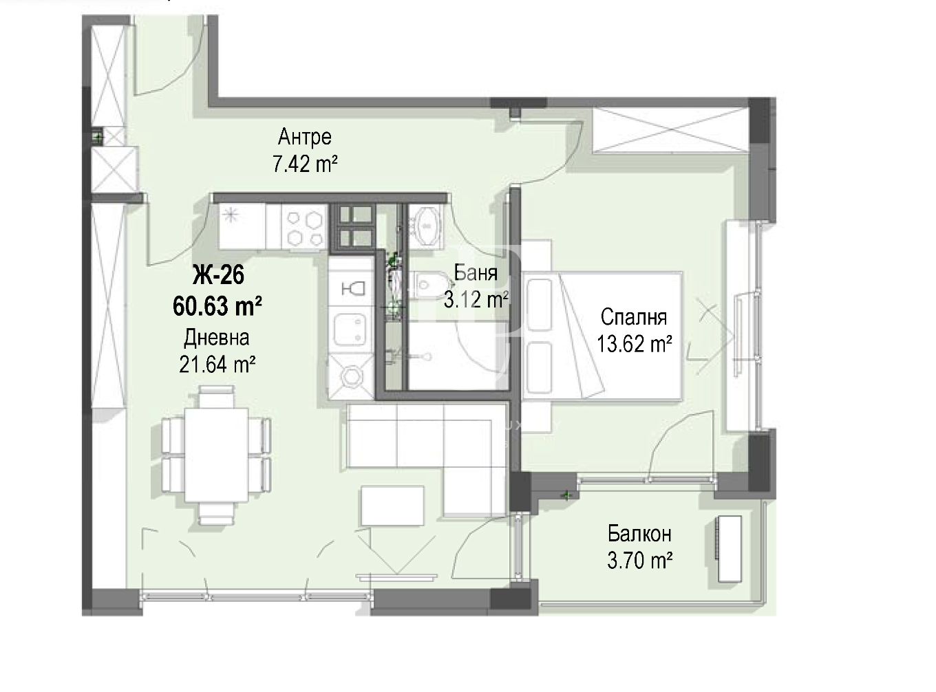 Манастирски ливади - изток, София Апартамент, на шпакловка и замазка РЗП: 81 кв.м. Етаж: 2 / 6 1 Спални, 1 Бани