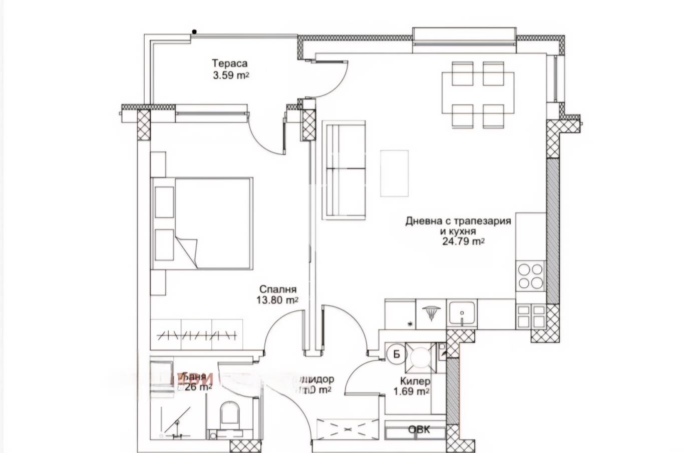 Кръстова вада, София Апартамент, с обзавеждане РЗП: 75 кв.м. Етаж: 4 / 6 1 Спални, 1 Бани