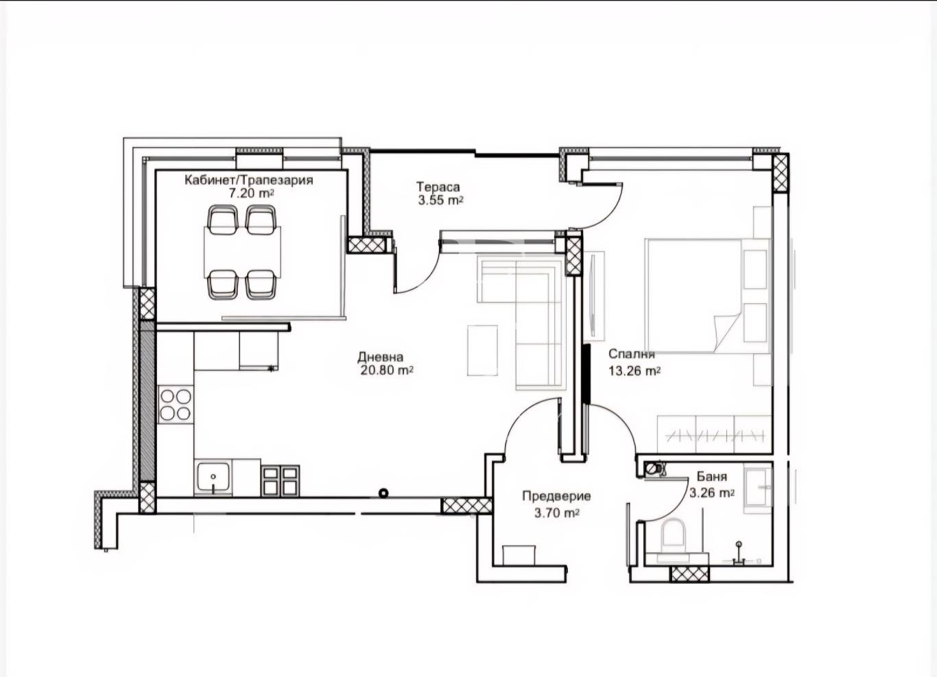 Кръстова вада, София Апартамент, с обзавеждане РЗП: 73 кв.м. Етаж: 3 / 6 1 Спални, 1 Бани