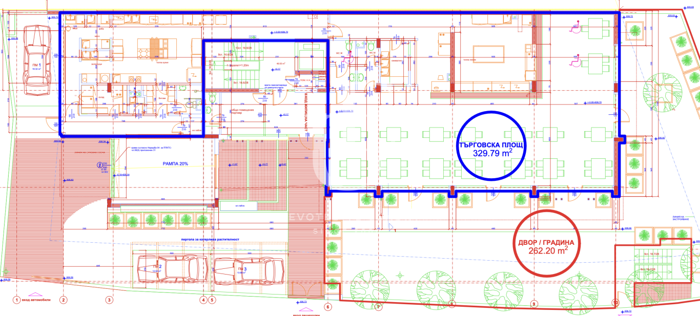 Unique Estates представя на вашето внимание отлично помещение под наем с изключителна локация в кв. Кръстова вада - в близост до Мол Парадайс и метростанция Витоша. Помещението е ъглово, с голямо лице към две улици. Разполага с красиво озеленен двор с площ от 263 кв.м., който може да се ползва единствено за нуждите на помещението и е отлична възможност за разполагане на маси през топлите месеци.