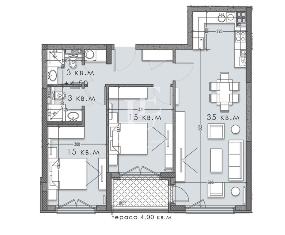 Лозенец, София Апартамент, на шпакловка и замазка РЗП: 147 кв.м. Етаж: 6 / 15 2 Спални, 2 Бани