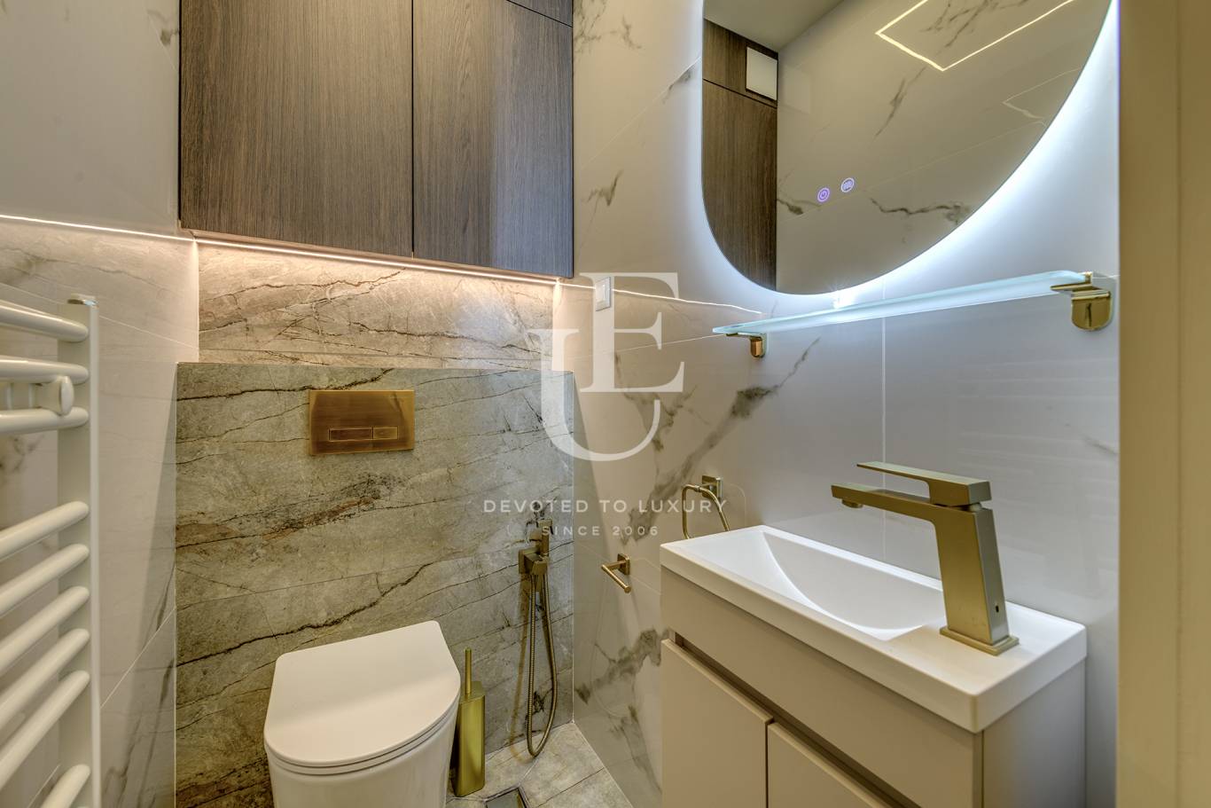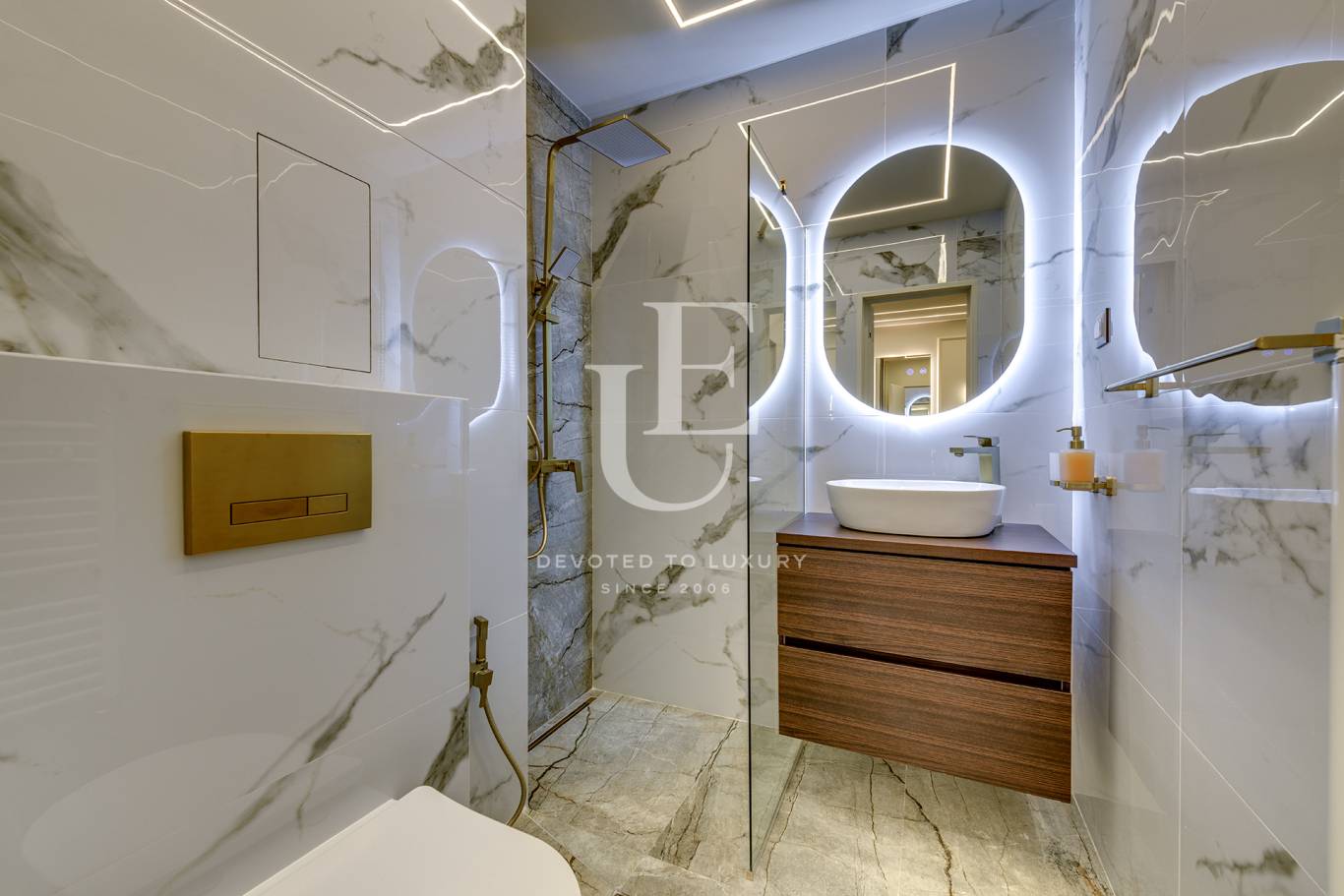 Този изключително стилен апартамент, съчетава модерна елегантност, висок клас италиански и испански материали, естествен паркет и уреди BOCH. Жилището е проектирано от интериорен дизайнер и впечатлява с усещане за простор, уют и премиум качество във всеки детайл. Отоплението е решено на газ и климатици във всяка стая.