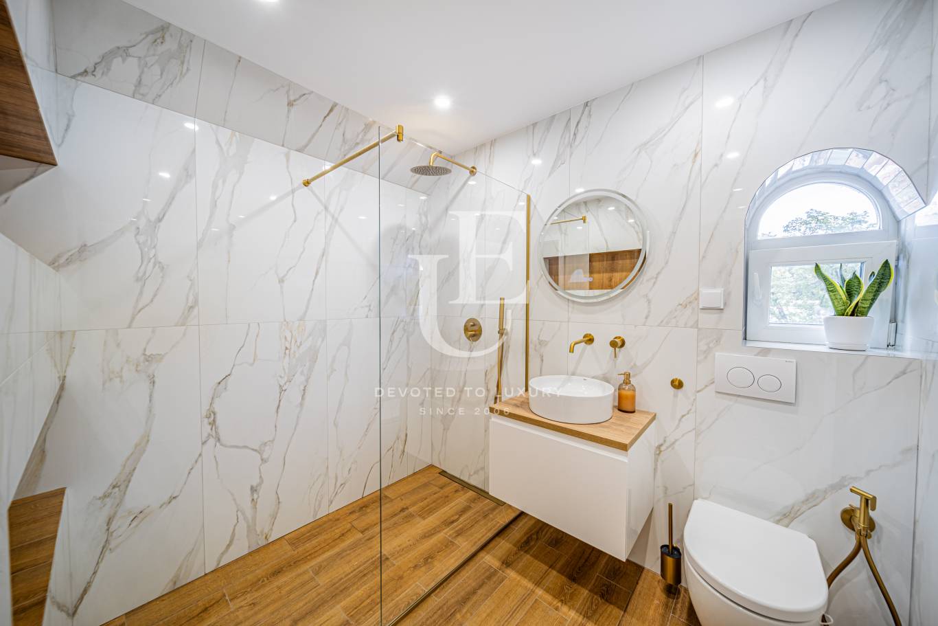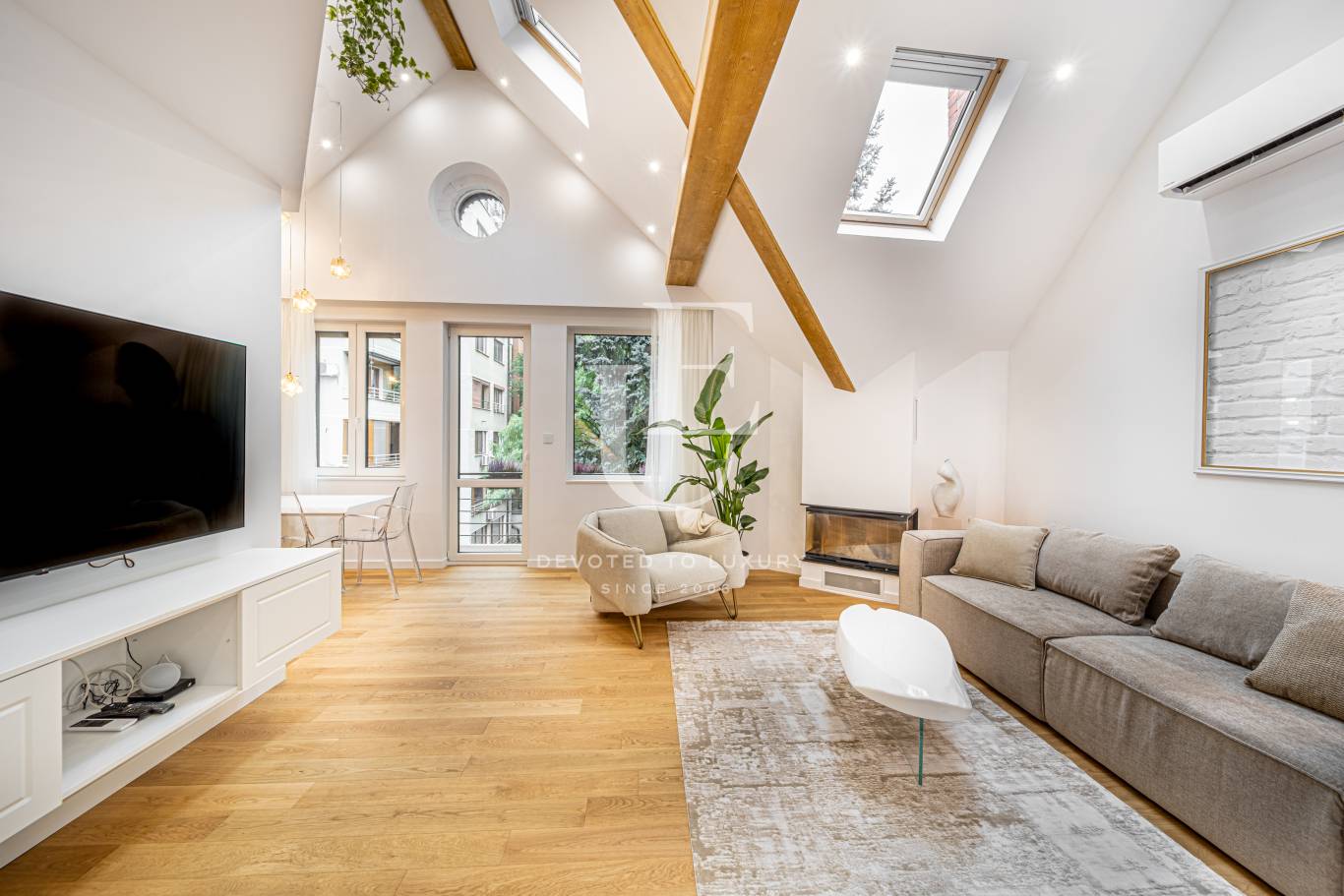 Unique estates има удоволствието да ви представи изключителен, дизайнерски апартамент на две нива с престижна локация- кв. Лозенец, ул. Елин Пелин. Имотът е завършен по дизайнерски проект, като в него е вложено много старание и фокус към детайла.Имотът се намира на последния (3-ти етаж) от аристократична къща с реновирана фасада и отлични общи части. Височината на таваните е 5 метра.