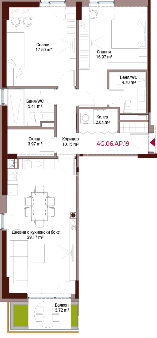 Кръстова вада, София Апартамент, на шпакловка и замазка РЗП: 97 кв.м. Етаж: 2 / 6 2 Спални, 2 Бани
