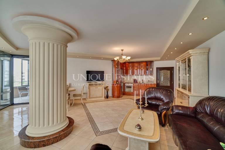 Unique Estates представя изключително просторен и елегантно обзаведен тристаен апартамент. Имотът се намира в нова сграда с модерна архитектура и отлично поддържани общи части, с контрол на достъпа и видеонаблюдение. Районът е много комуникативен, с бърз достъп до бул. „Симеоновско шосе“, Околовръстен път и търговски обекти, включително големи супермаркети, спортни зали и учебни заведения.
