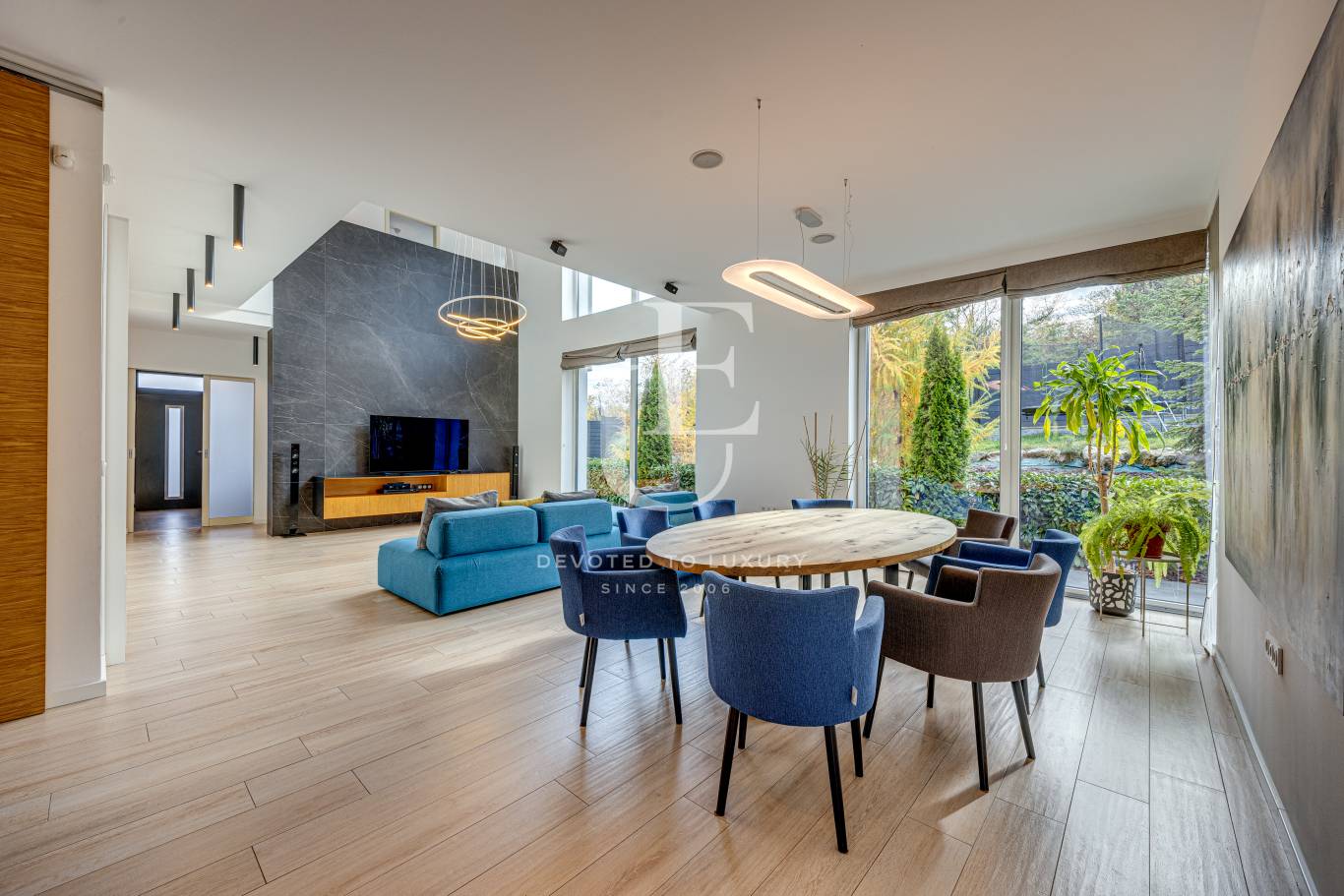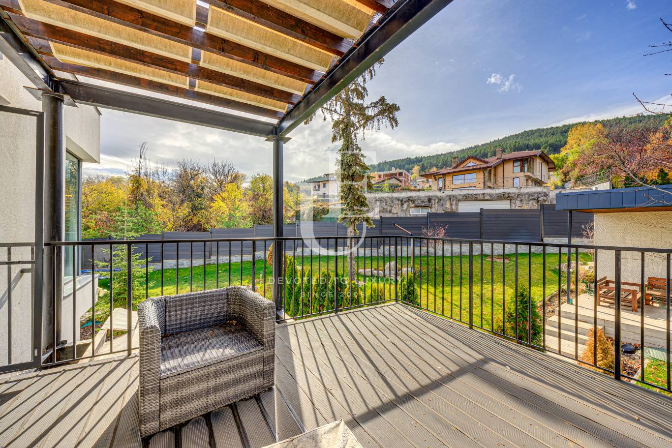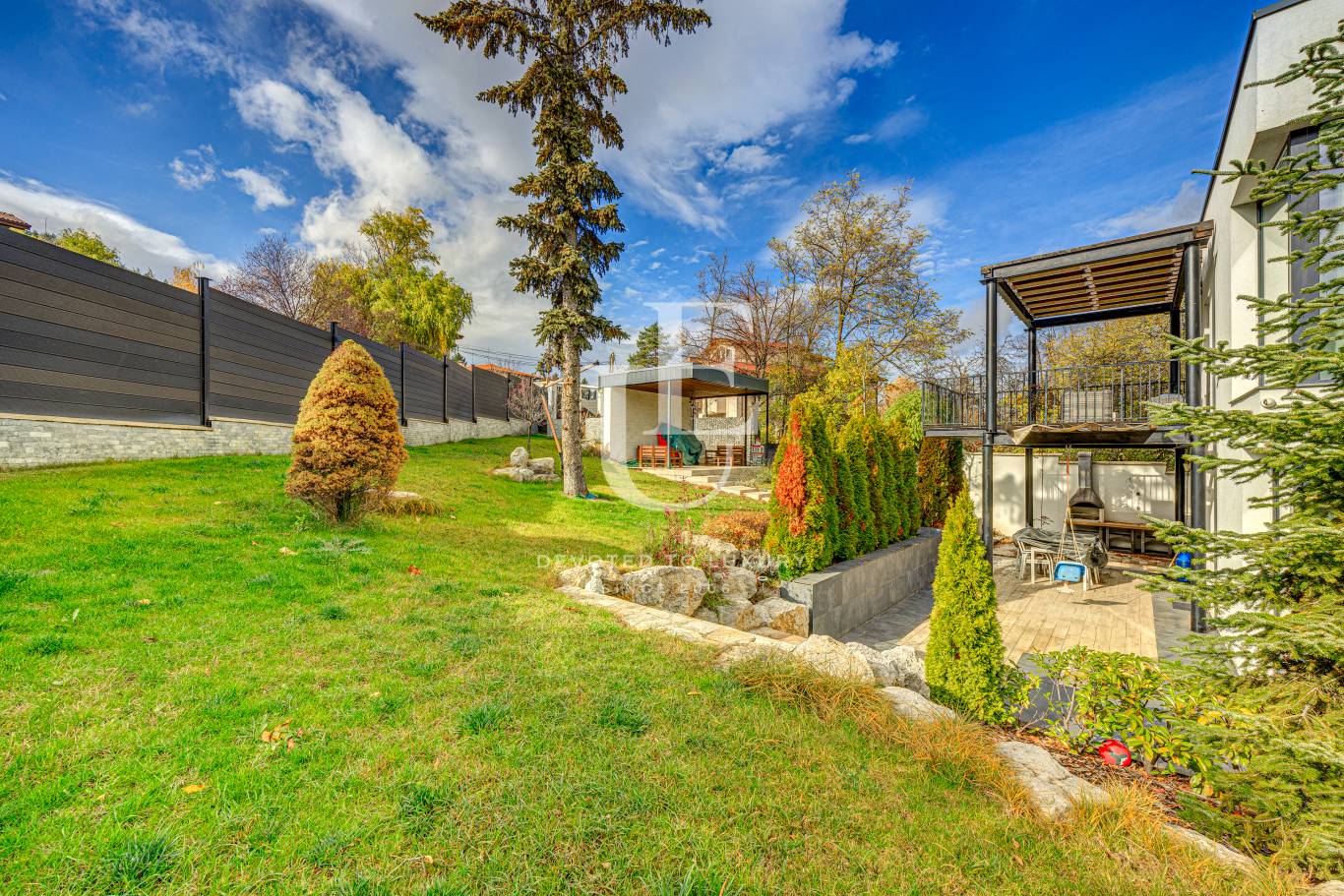Освен впечатляващия си дизайн и функционалност, имотът предлага спокойствие и уединение, съчетани с комуникативна локация.