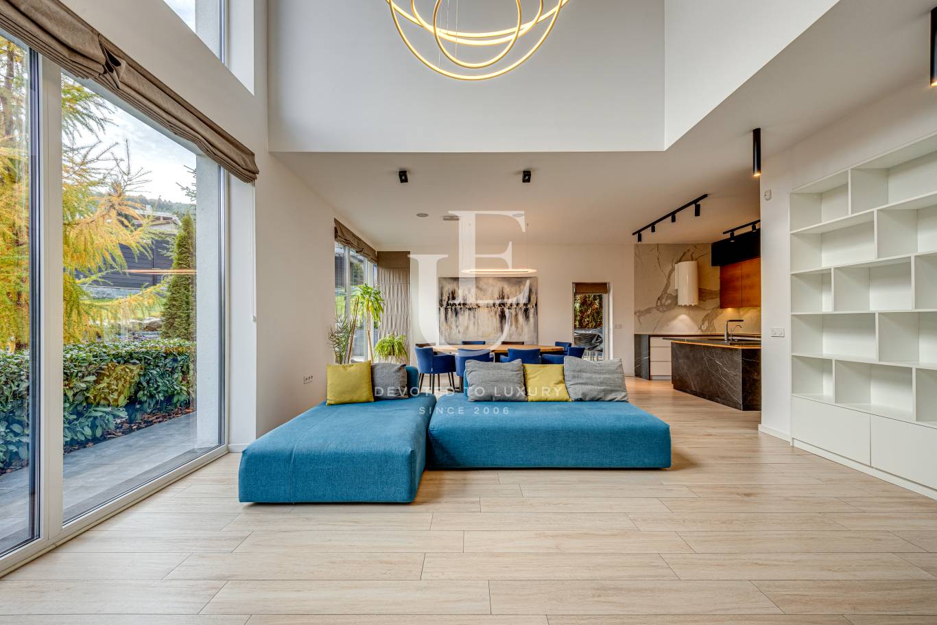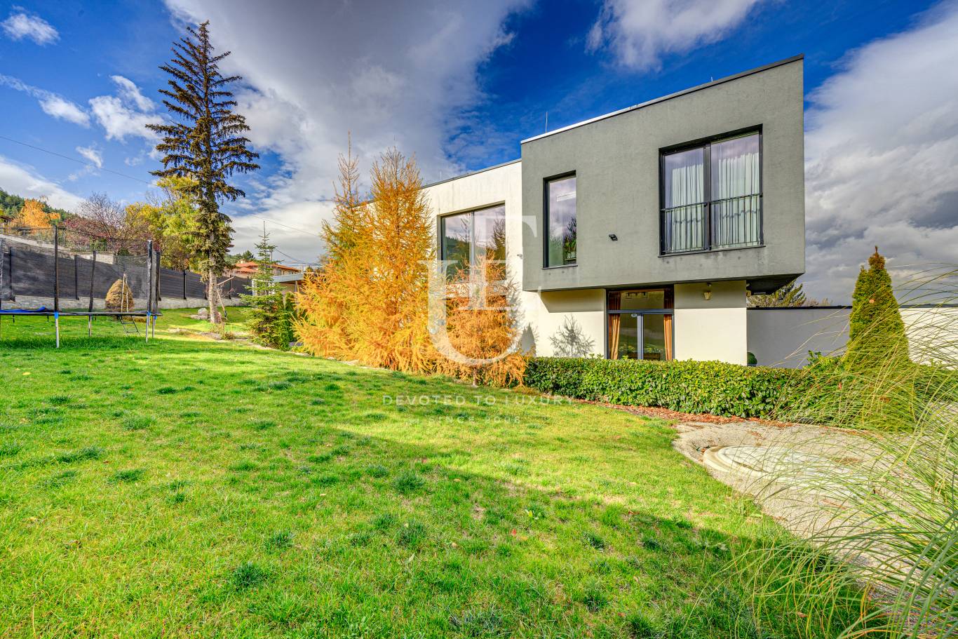 Unique Estates има удоволствието да Ви представи самостоятелна луксозна дизайнерска къща под наем, разположена в подножието на Витоша над Резиденшъл парк. Този забележителен имот съчетава съвременен дизайн, прецизно разпределение и удобства. В къщата има инсталиран високоефективен енергоспестяващ рекуператор, който осигурява достъп до чист въздух до къщата и значително намалява разходите за отопление.