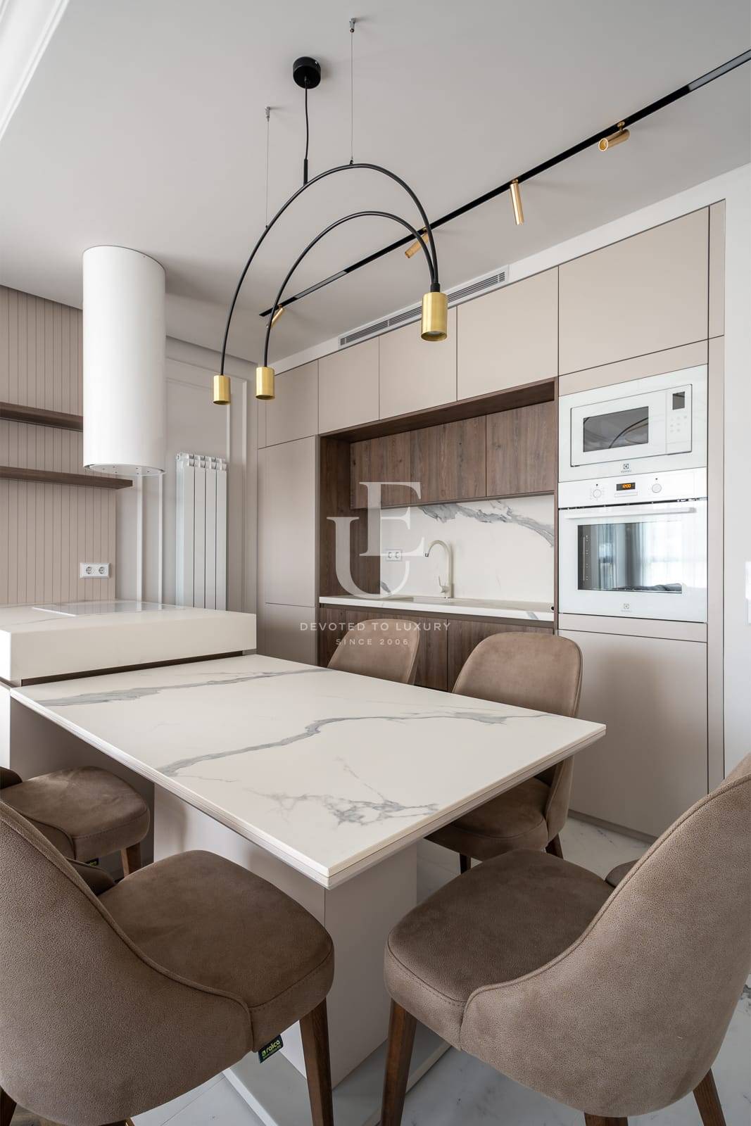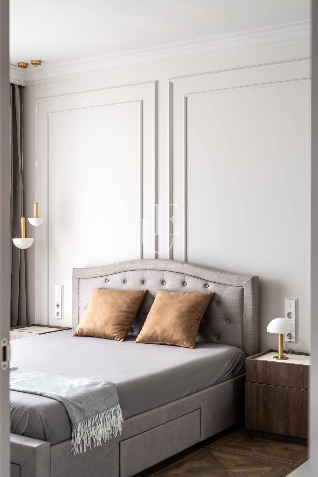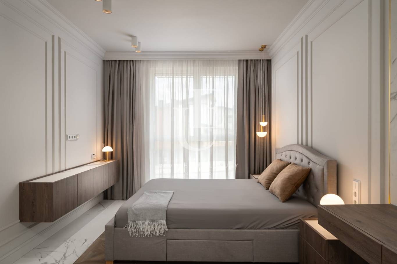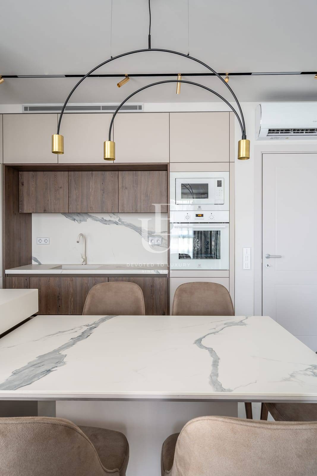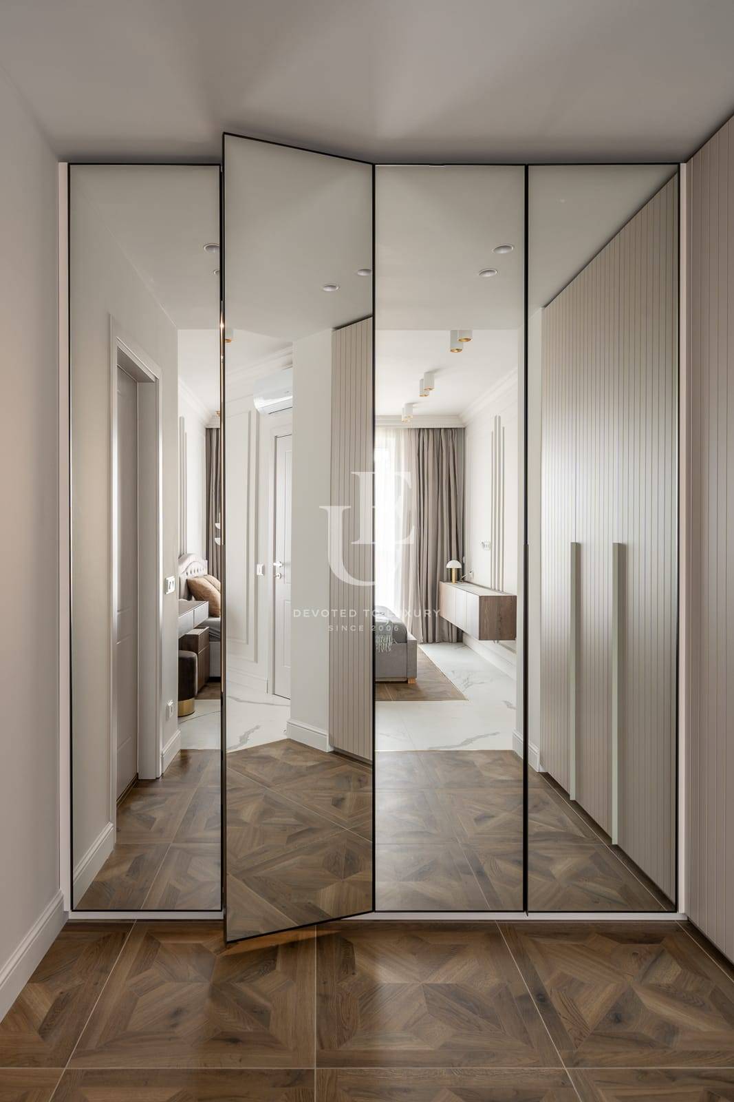 Апартаментът се предлага обзаведен по дизайнерски проект и е отлично завършен без компромис с качеството на използваните материали. Интериорният дизайн е шедьовър на съвременната естетика, с отворено и плавно оформление, което увеличава максимално пространството, естествената светлина и безпроблемните преходи между жилищните зони.