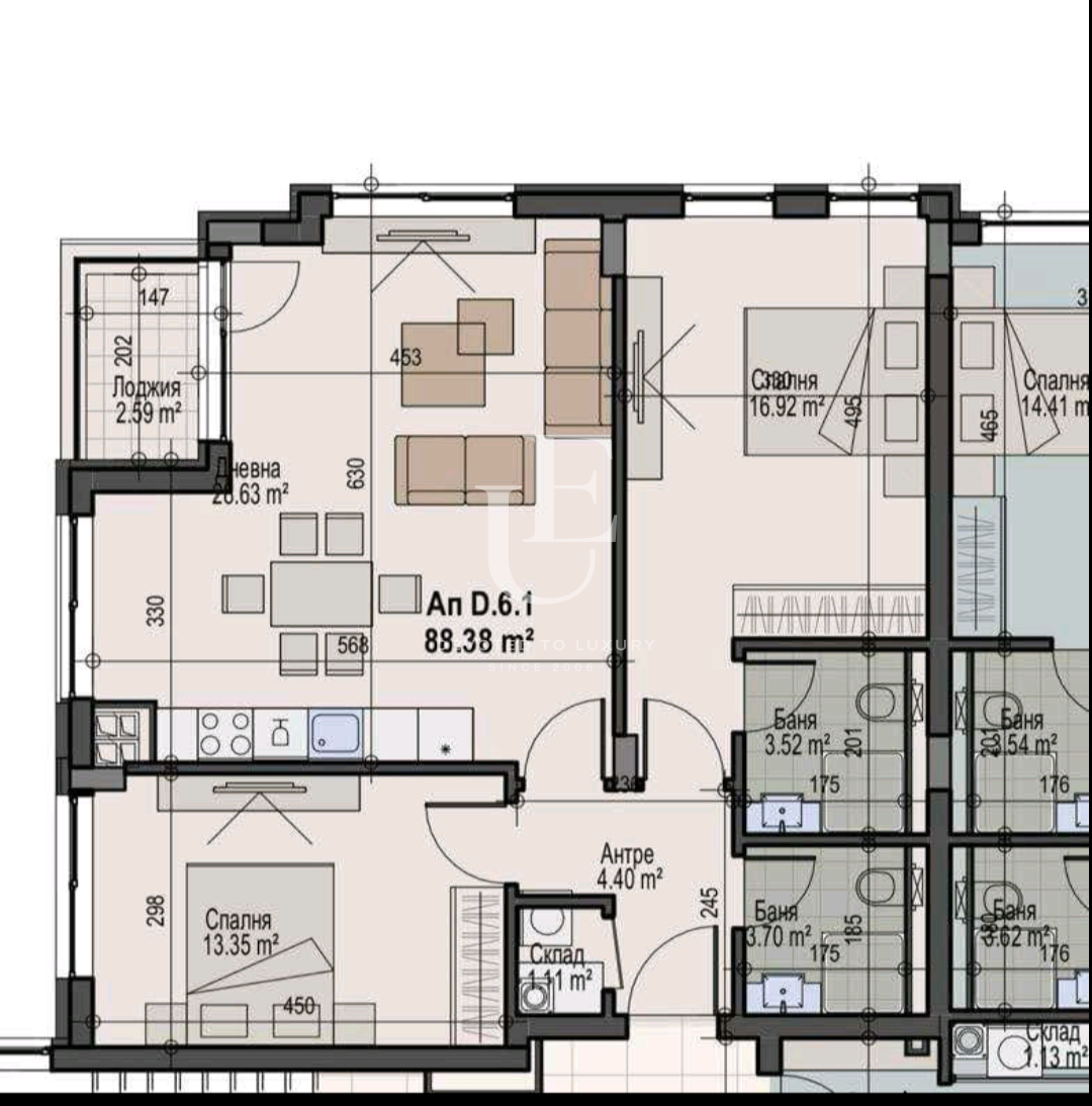 Манастирски ливади - изток, София Апартамент, на шпакловка и замазка РЗП: 128 кв.м. Етаж: 4 / 6 2 Спални, 2 Бани