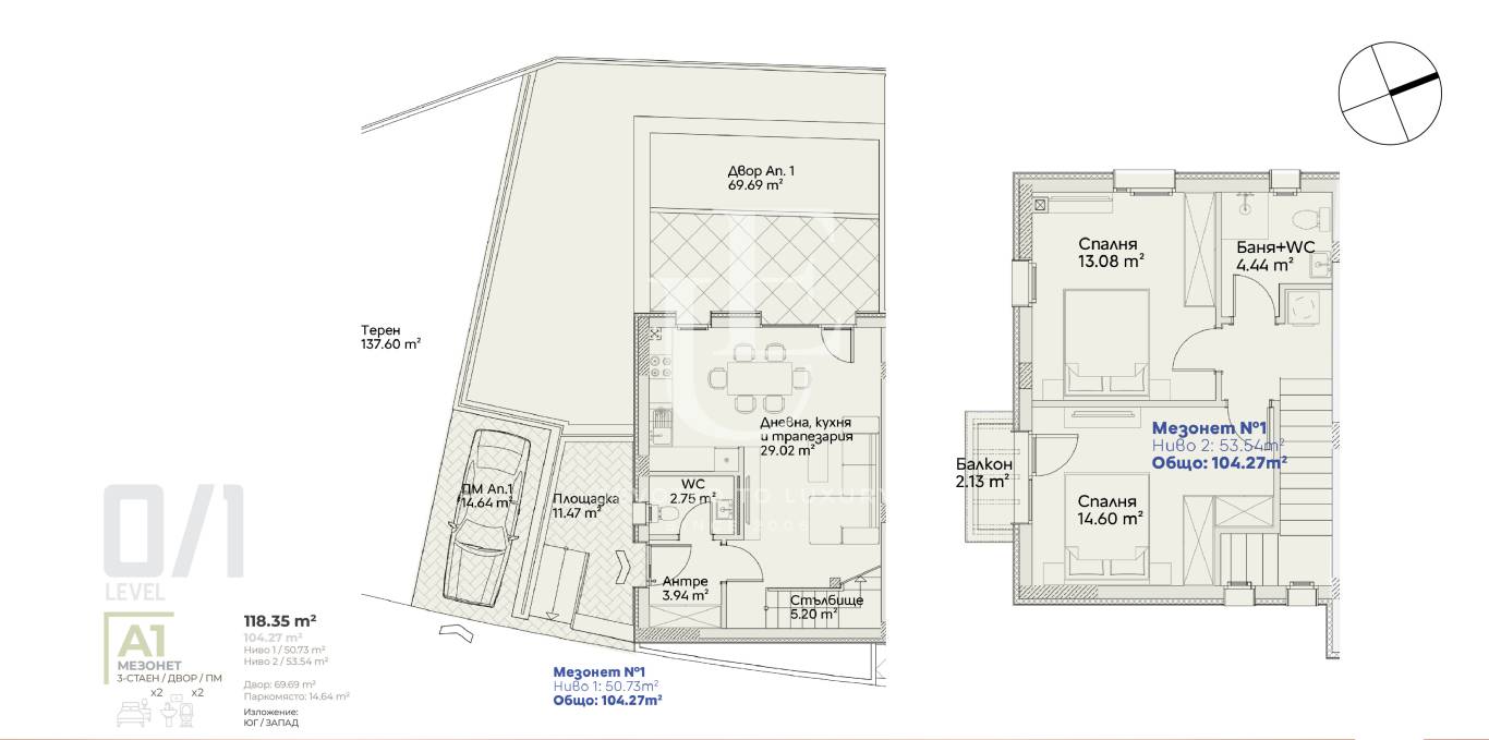 Тристаен мезонет с прилежащ двор и паркомясто в бутикова сграда