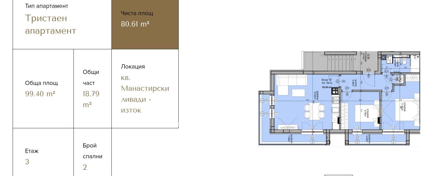 Тристаен апартамент в нова сграда кв. Манастирски ливади-изток
