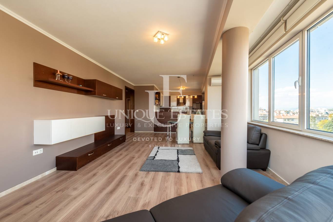 Unique Estates представя стилен двустаен апартамент под наем в непосредствена близост до Медицинска академия. Предлага се напълно обзаведен с висок клас мебели и техника. Панорамна гледка от дневната. Сградата е поддържана и с контролиран достъп.
