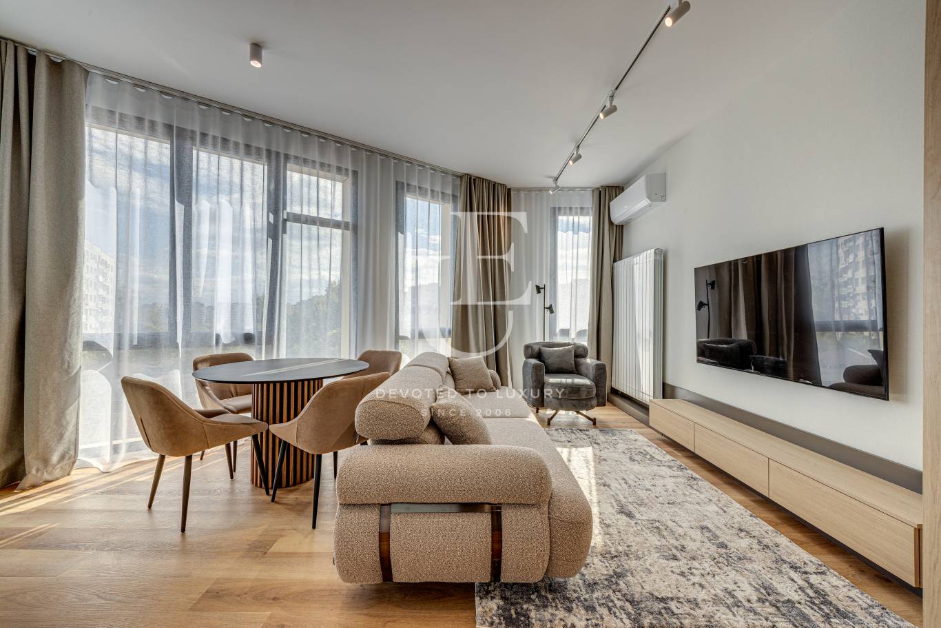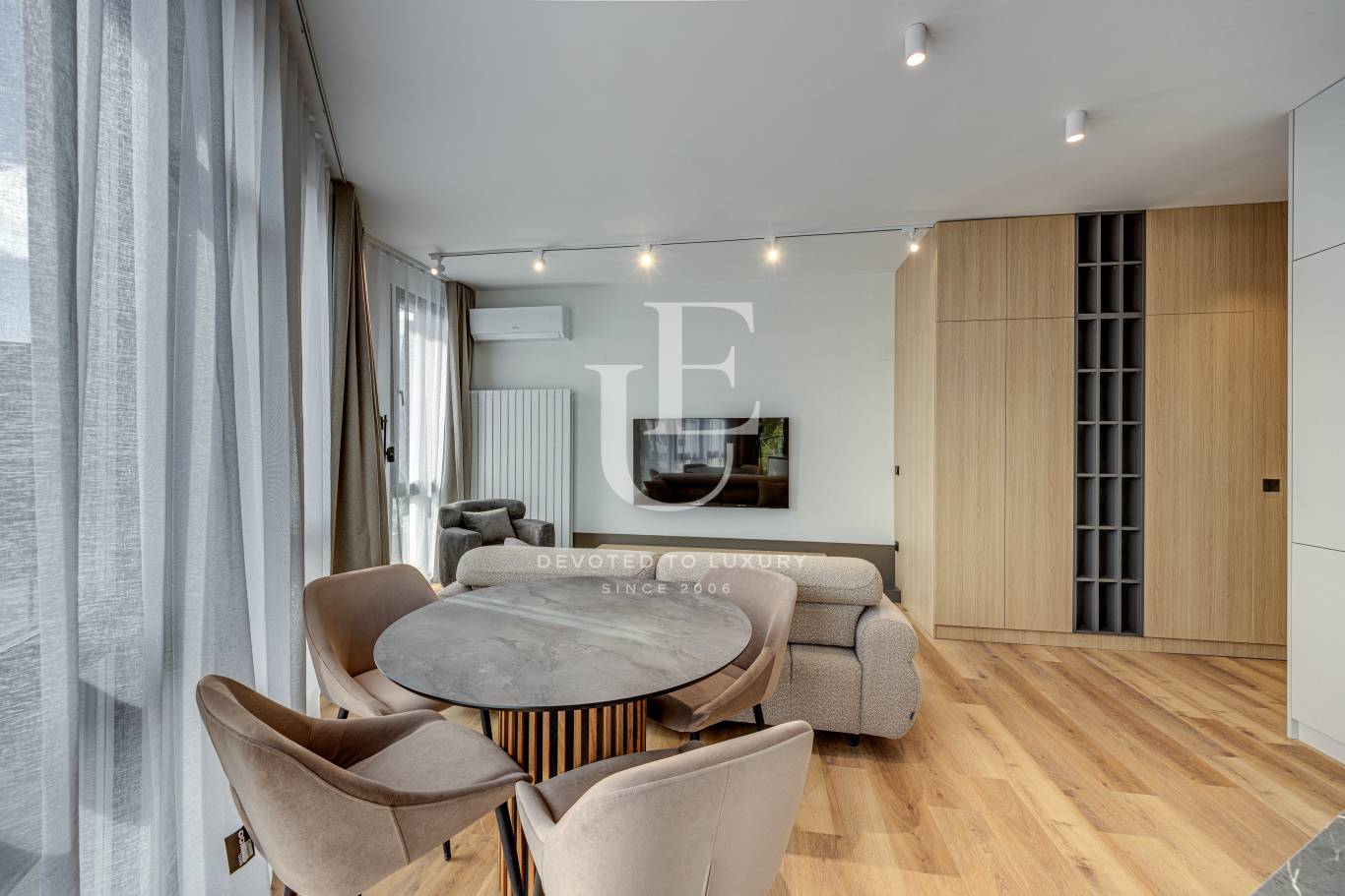 Unique Estates педставя на вашето внимание чисто нов, луксозно завършен и напълно обзаведен двустаен апартамент под наем, в на изключително комуникативна локация в кв. Младост 4. Намира се на пешеходно разстояние от метростанция и ключови спирки на градския транспорт, което осигурява бърз и лесен достъп до всяка точка на града. Разположен на четвърти етаж в нова, модерна сграда, с отлично поддържани общи части, контрол на достъпа и представителен вход. Апартаментът е обзаведен с внимание към детайла и висок клас мебели. Жилището се състои от светла всекидневна с кухненски бокс, за което допринасят и високите 3 метра тавани, уютна спалня, баня с тоалетна и тераса. Напълно оборудван с всички необходими електроуреди. Отоплението е на ТЕЦ, включително климатици във всяка стая. Възможност за допълнително наемане на подземно паркомясто в сградата за Вашето удобство и сигурност. Допълнително се заплаща такса поддръжка към сградата, на стойност 50 евро.