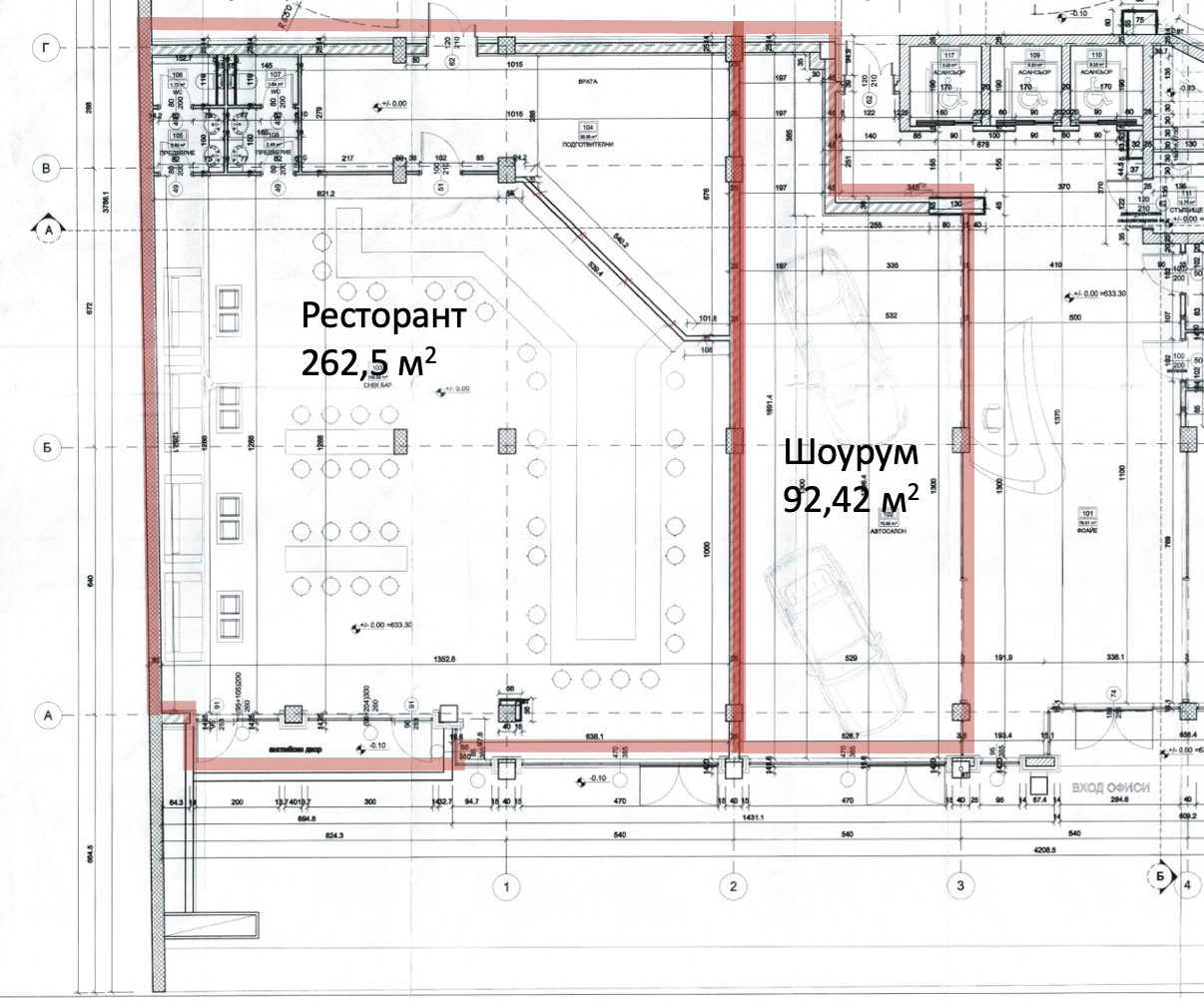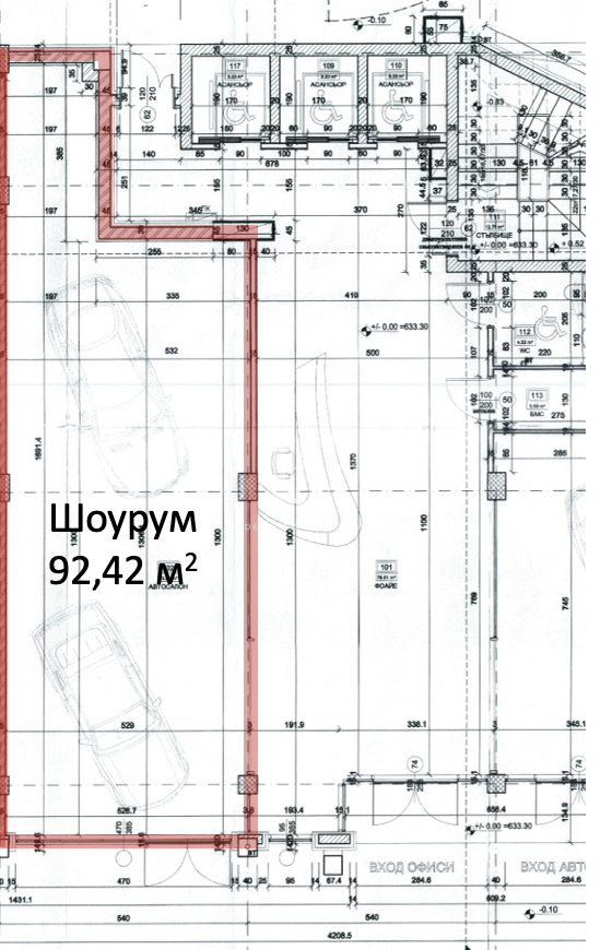 Пространството е обособено като шоу руум и е разположено на партерният етаж в сградата. Възможна е и смяна на предназначениято му и ползването за магазин или офис.