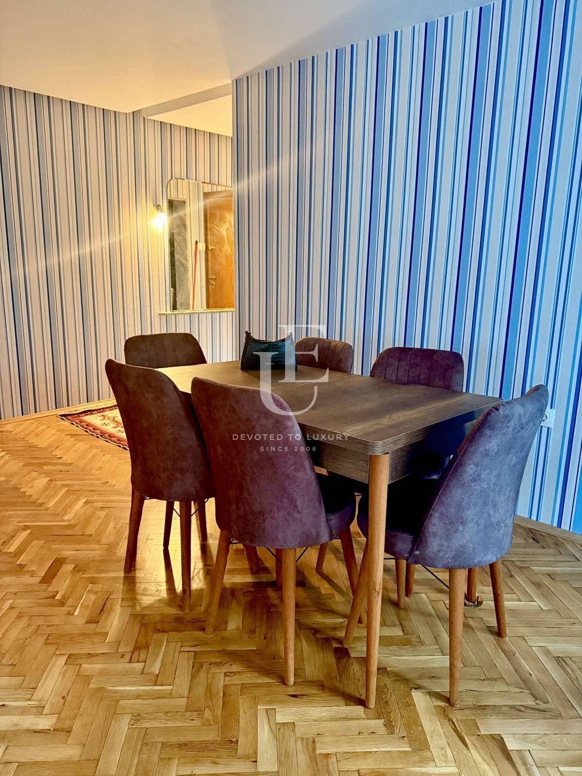 Unique Estates Ви представя просторен апартамент под наем в престижния ж.к. "Стрелбище". Апартаментът е след ремонт и разполага с две самостоятелни спални, кабинет, който може да бъде обособен в трета спалня, хол с трапезария, кухня, баня, отделна тоалетна и две големи остъклени тераси, където обитателят на апаратмента може да се наслаждава на сутрешното си кафе дори в студените зимни дни. В ж.к. "Стрелбище" можете да се насладавате на предимствата на "старите" квартали, а именно зелени площи и богато залесените тротоарни пространства. В близост има множество хранителни магазини и малки заведения за хранене. Апартаментът се намира на 5-10 минути пеш метростанция.