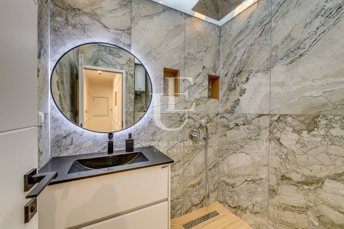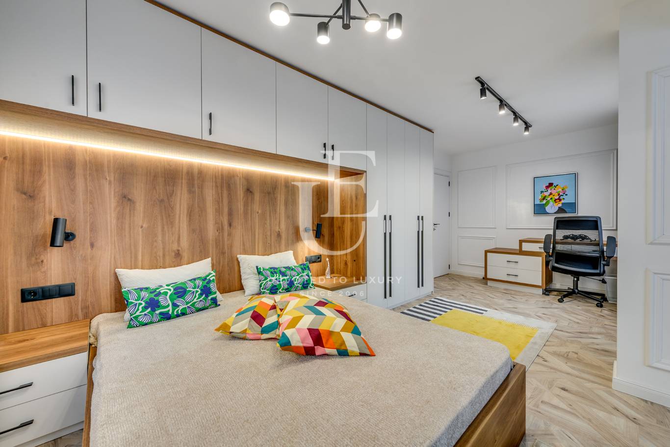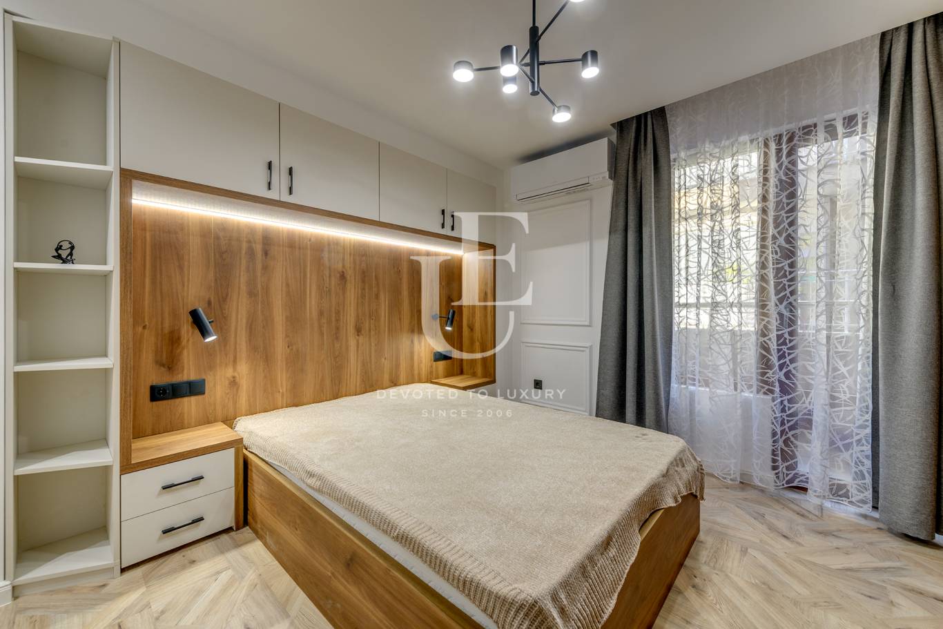 Unique Estates представя тристаен апартамент под наем в широк Център. Жилището е с основен ремонт, след който очаква новите си обитатели. Усещането е за топлина, уют и спокойствие. Апартаментът е оборудван с телевизори Samsung във всяка стая, климатици Miitsubishi, пералня, съдомиялна, изцяло оборудвана кухня, кафемашина, вградена микровълнова, ел. кана, чинии и всички необходими кухенски принадлежности, холна маса от дъб, холни маси с епоксидна смола, картини от български художници. В жилището има множество гардероби и пространства за съхранение.