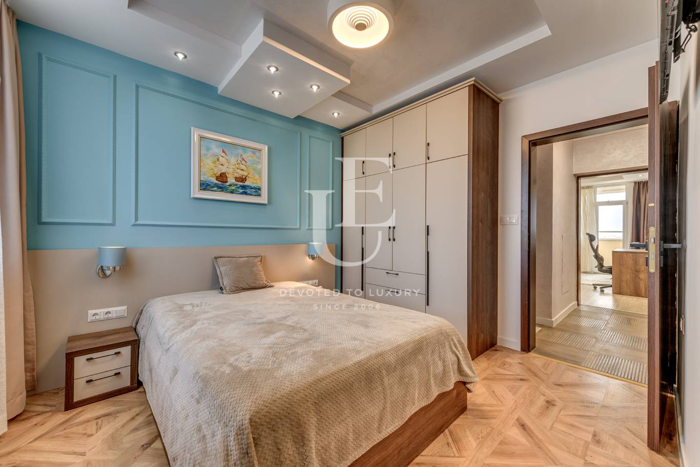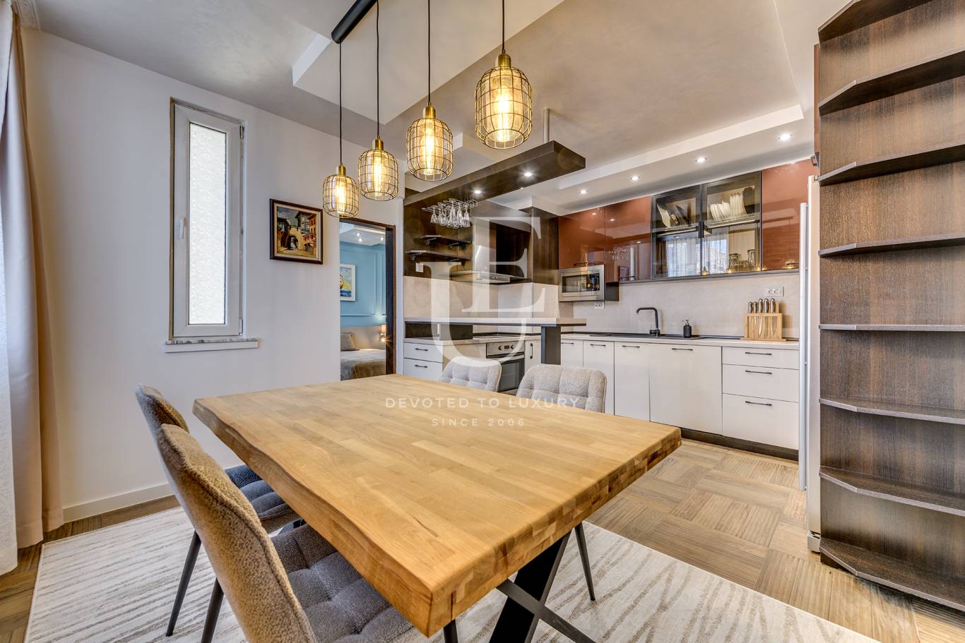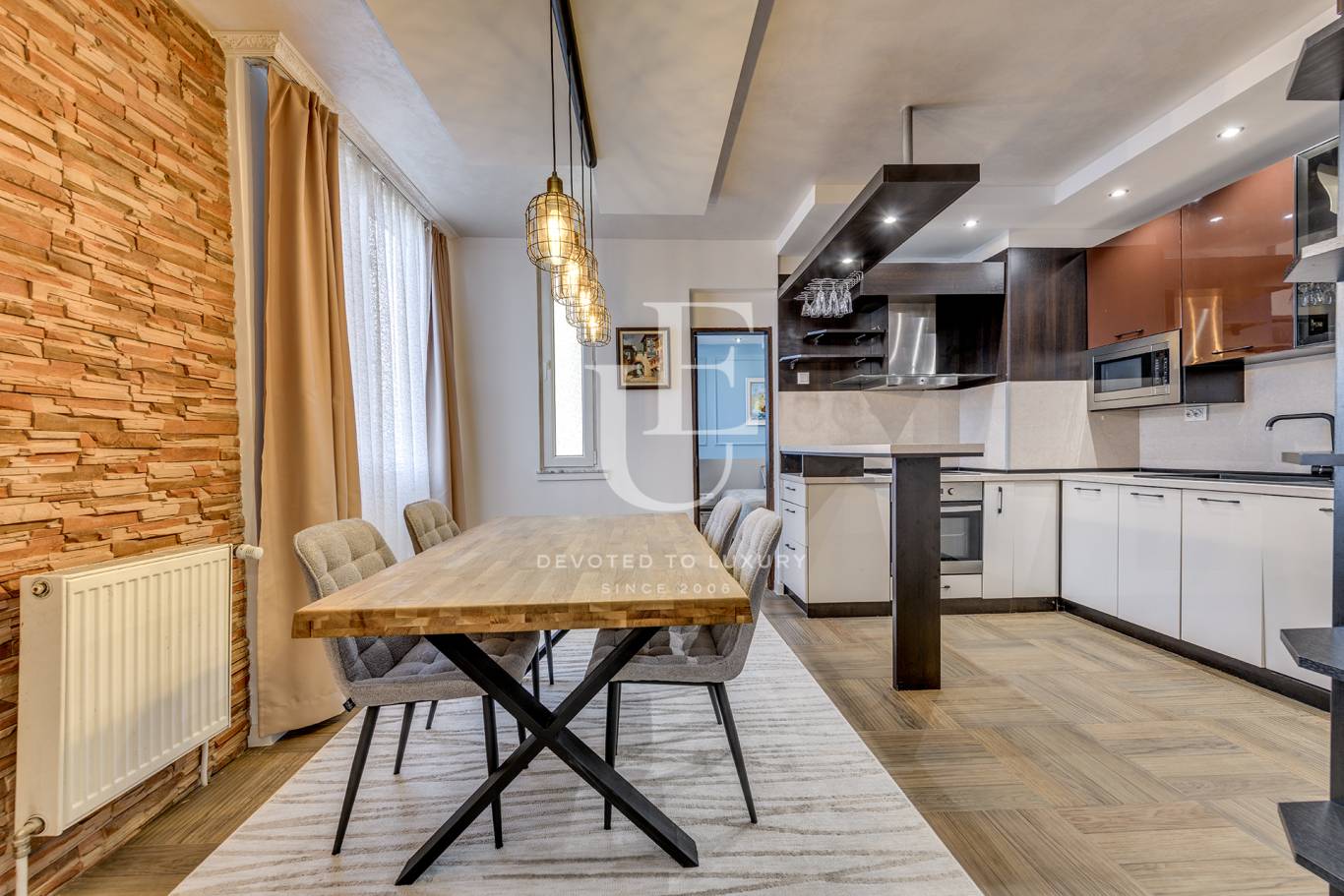 Unique Estates представя тристаен апартамент след основен ремонт. В обзавеждането на жилището са вложени висококачествени мебели, масивни поръчкови дървени маси, маслени картини-произведения на български художници, вложено внимание към детайла.