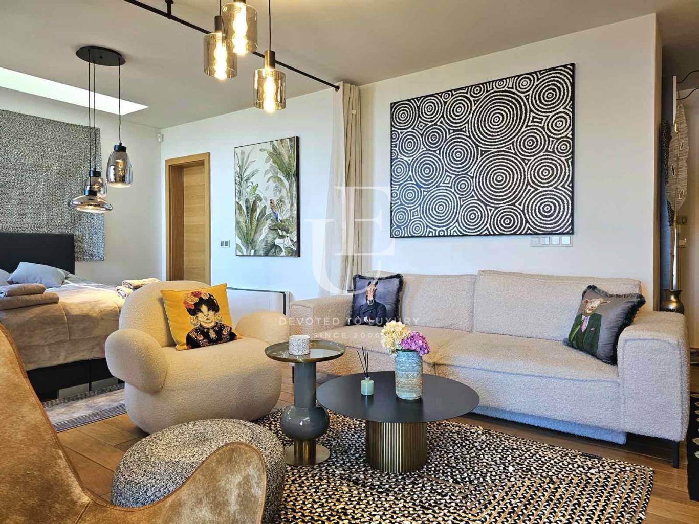 Unique estates има удовлствието да ви представи изключително дизайнерски апартамент, разположен в една от най-престижните сгради в района на Южен парк. Имотът впечатлява със страхотна тераса, която разкрива неповторима панорамна гледка към Витоша и самия парк.