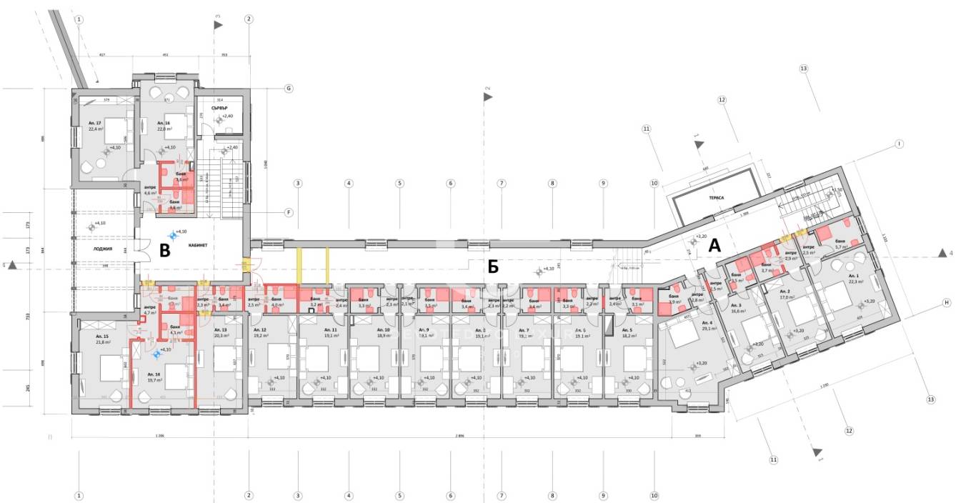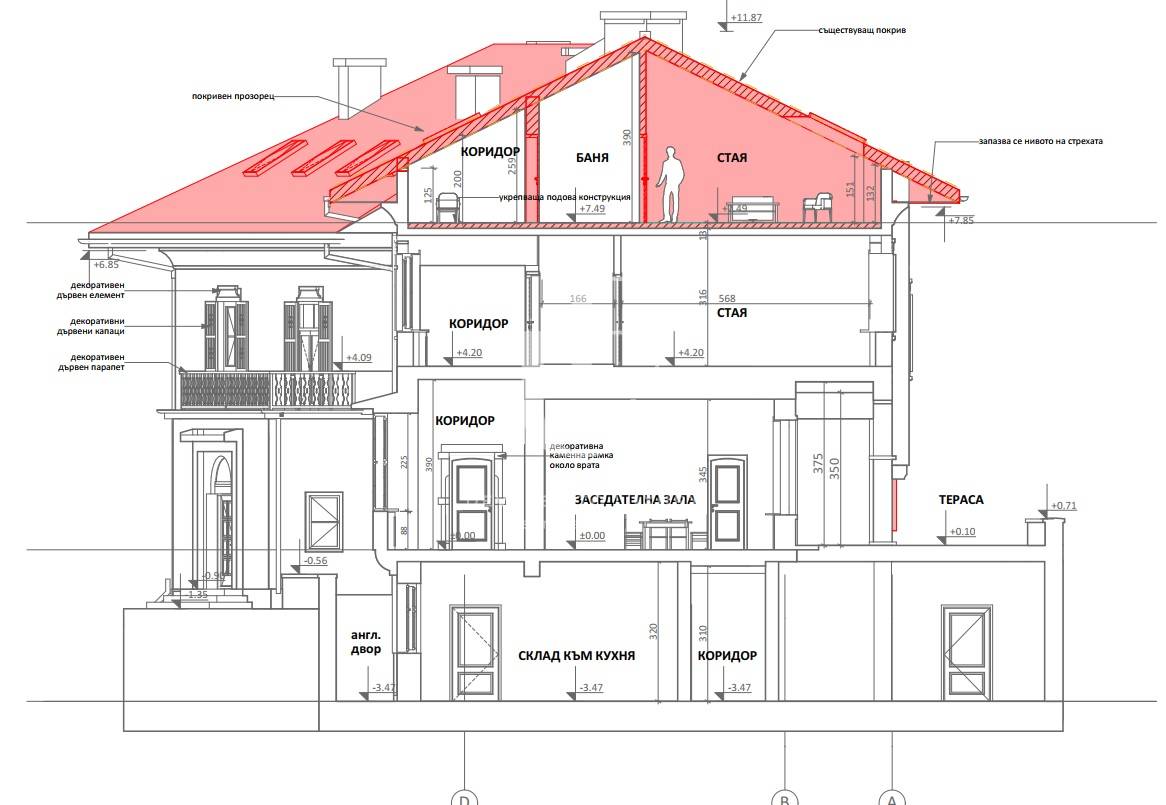 Налични са идеини проекти за една възможна реконструкция на основната сграда с цел обособяване на модерни стамостоятелни стаи и/или апартаменти в Скици.