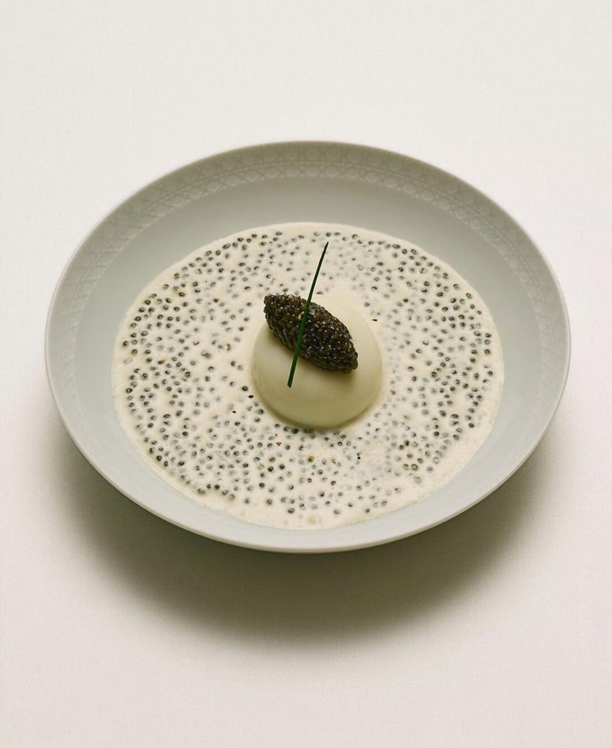 • Œuf Christian Dior – поширано яйце с хайвер Prunier, крем и деликатен слой аспик с шунка – кулинарен еквивалент на haute couture кройка.