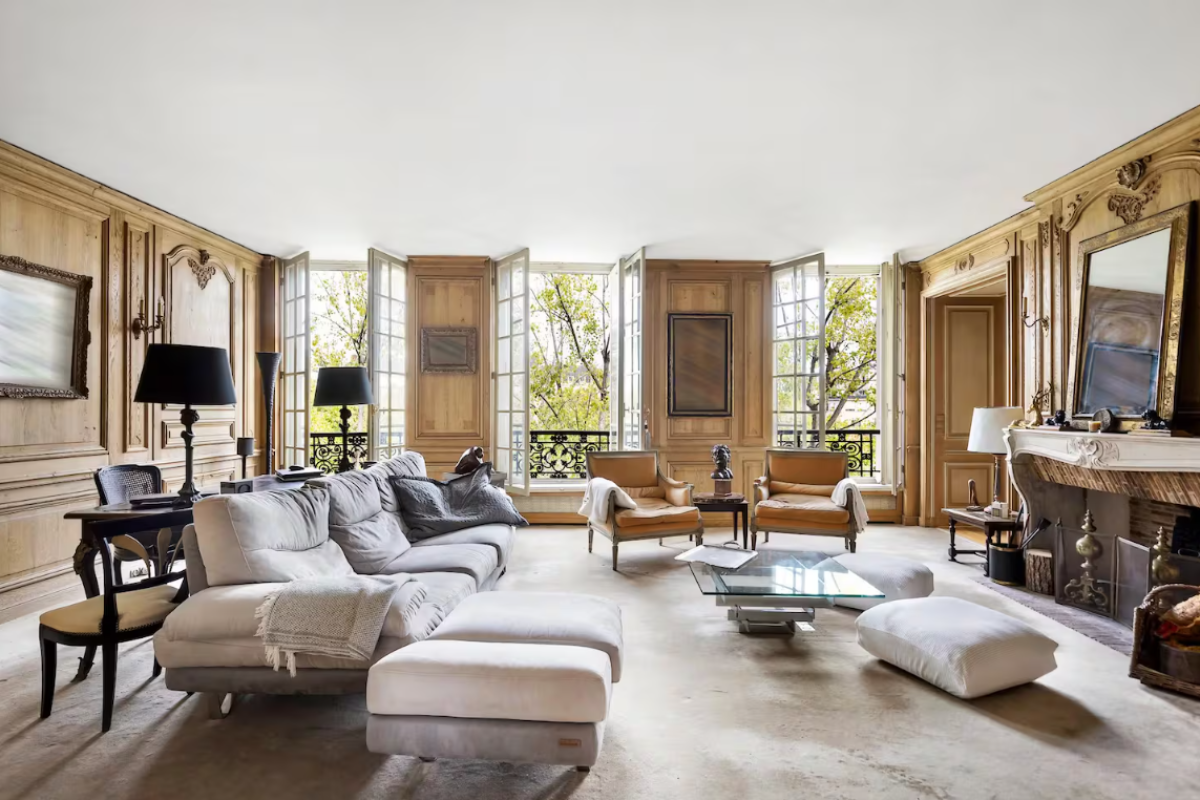 Сервизен частен асансьор се издига до централно фоайе, което води към внушителна приемна с дървени ламперии, богати дървени подове и мебели в земни тонове. Френски прозорци откриват гледка като от пощенска картичка - към Сена и красивата барокова църква „Сен-Пол-Сен-Луи“.