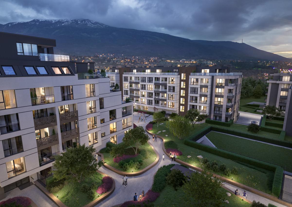 Комплексът се състои от 5 елегантни сгради с двустайни, тристайни и четиристайни апартаменти с отлична функционалност и оптимално разпределение. Жилищата разкриват панорамни гледки към града и планината, а партерните апартаменти разполагат с красиви дворове. За допълнителен комфорт е създаден подземен паркинг на две нива, с възможност за закупуване на единични и двойни гаражи, както и индивидуални паркоместа.