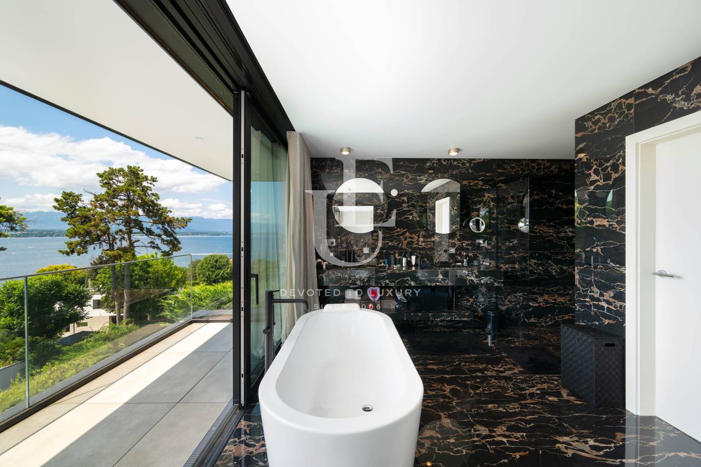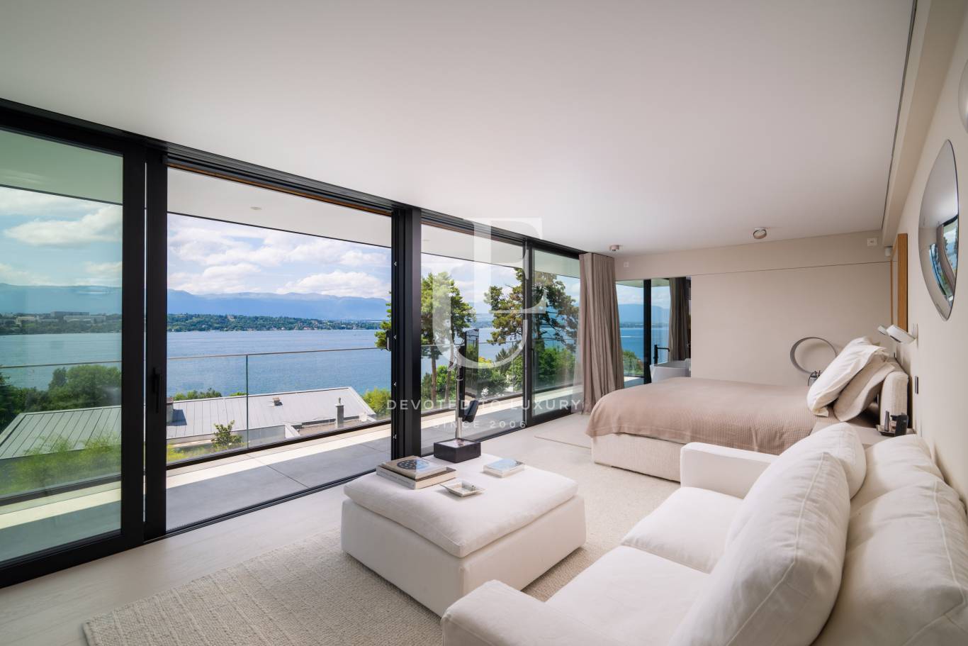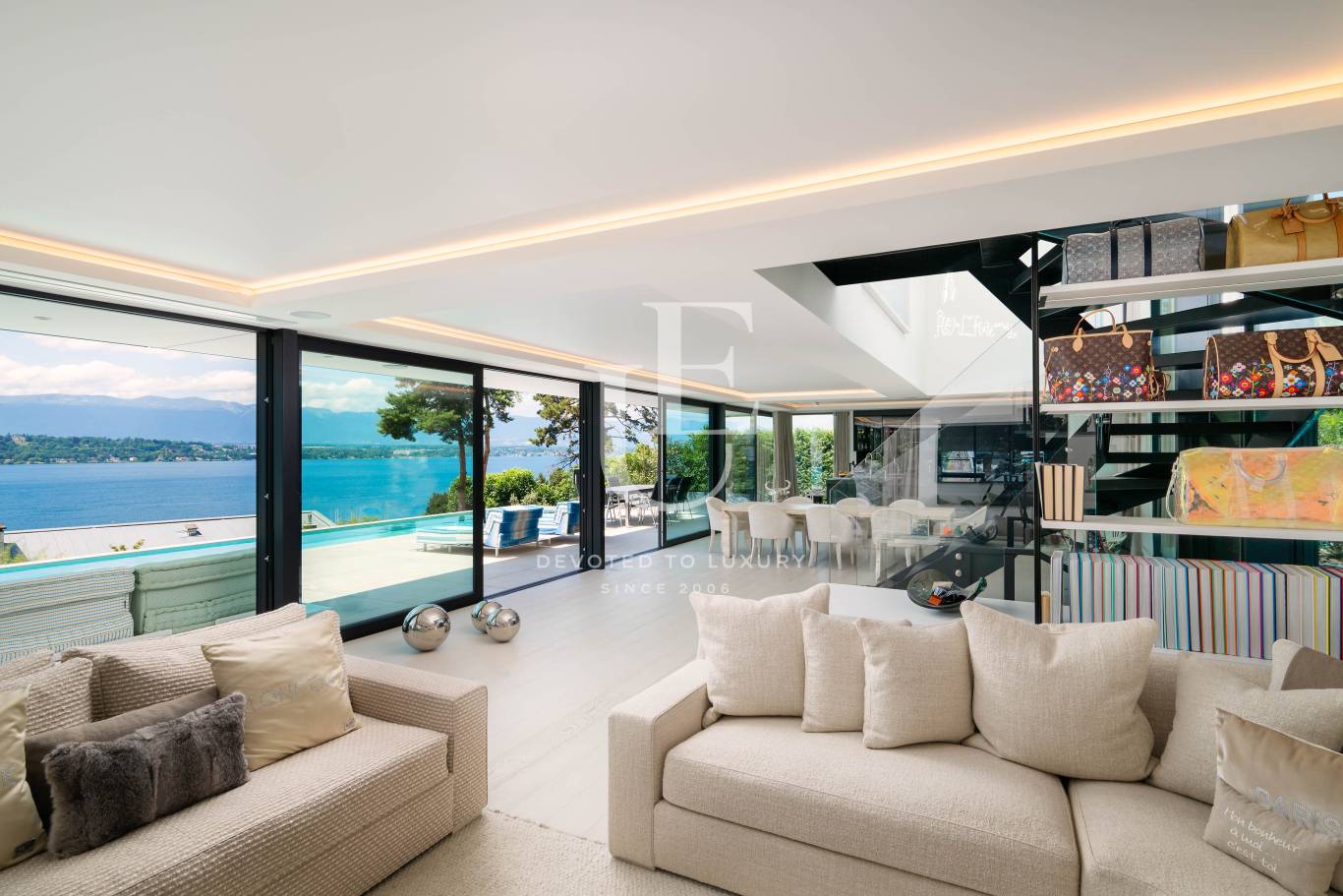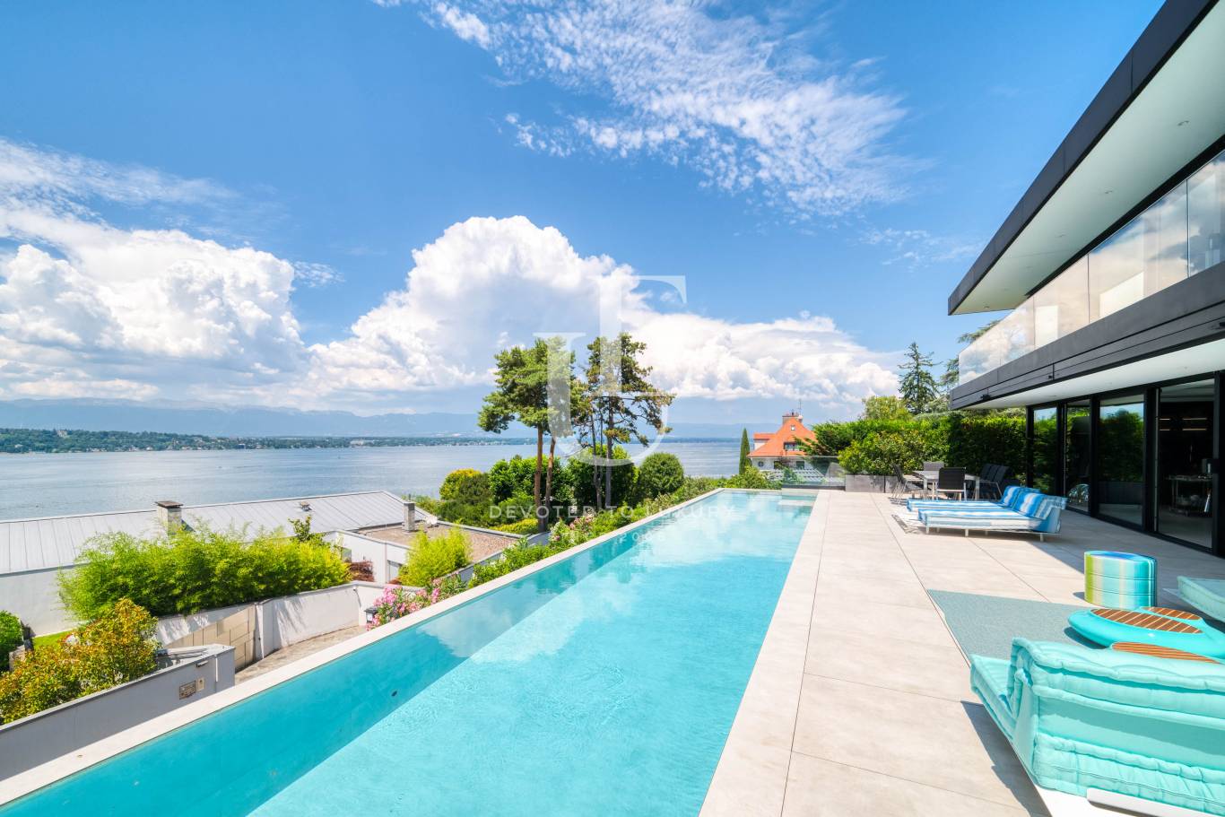 Луксозна вила с минималистичен дизайн и инфинити басейн в Женева