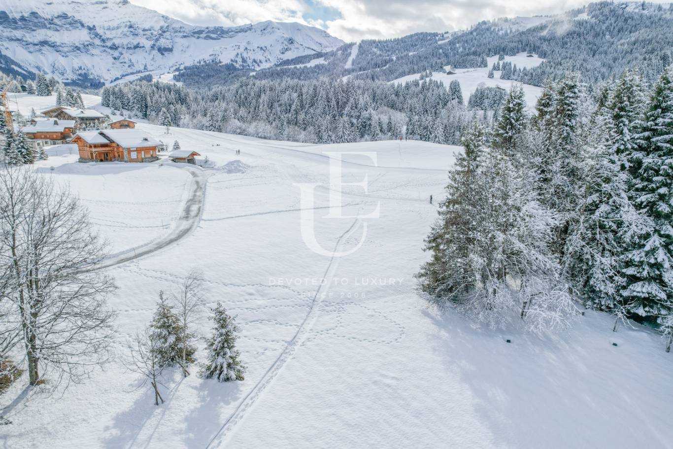 Unique Estates | Christie's International Real Estate представя изключителна собственост, разположена в сърцето на красиво озеленен и горист парцел от над 7 600 кв.м на престижния Route de la Côte 2000 в Межев. Граничи с трасетата за ски бягане и е в непосредствена близост до летището на Межев, предлагайки уединена и привилегирована локация, идеална за ценители на лукса, спокойствието и недокоснатата природа.