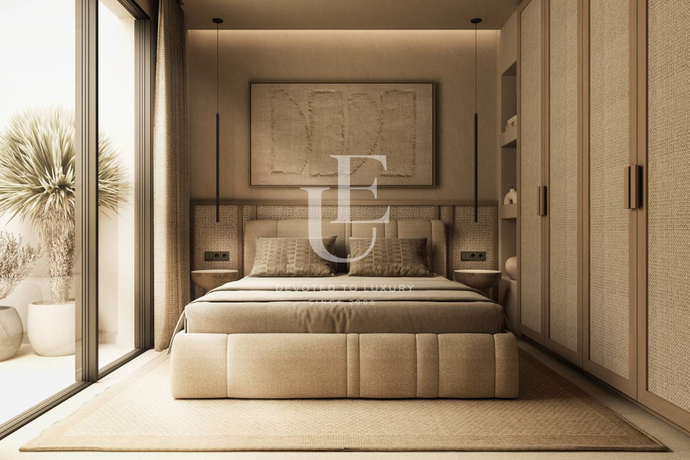 Първи етаж: Три спални със собствени бани и гардеробни, проектирани като лични убежища с естествени текстури и мек полъх на природата.