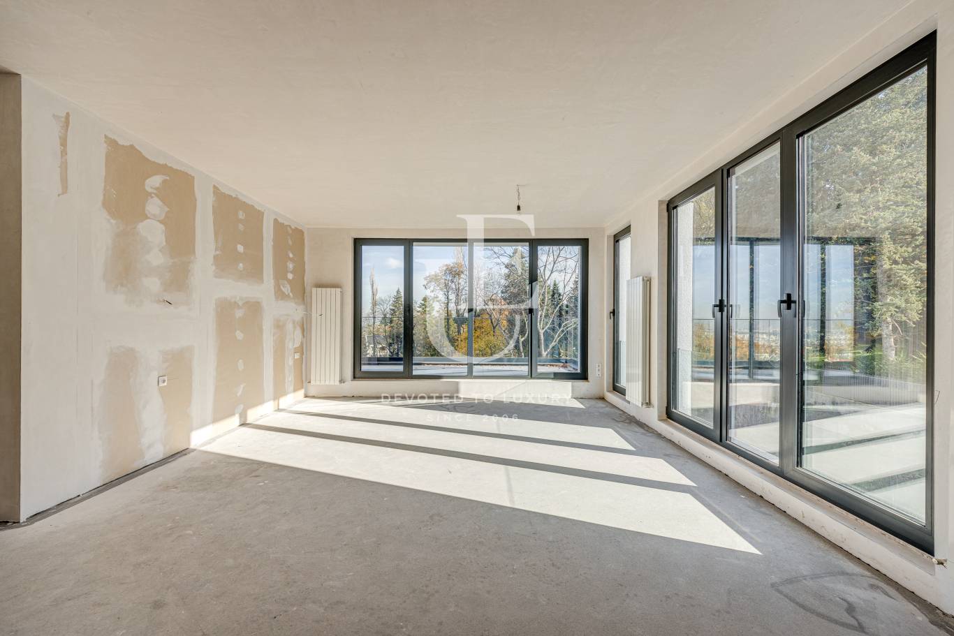 Unique Estates exclusively presents for sale a unique panoramic penthouse, occupying the entire top floor in a new beautiful building. Situated on an area of 311 sq m, the property allows for internal redistribution, and the finishing works are left to the taste and style of the new owner. Unique views are revealed from the panoramic windows in all directions and invite the beautiful Vitosha Mountain into your home. The building has excellently maintained common areas and controlled access. The offer price includes three large parking spaces.