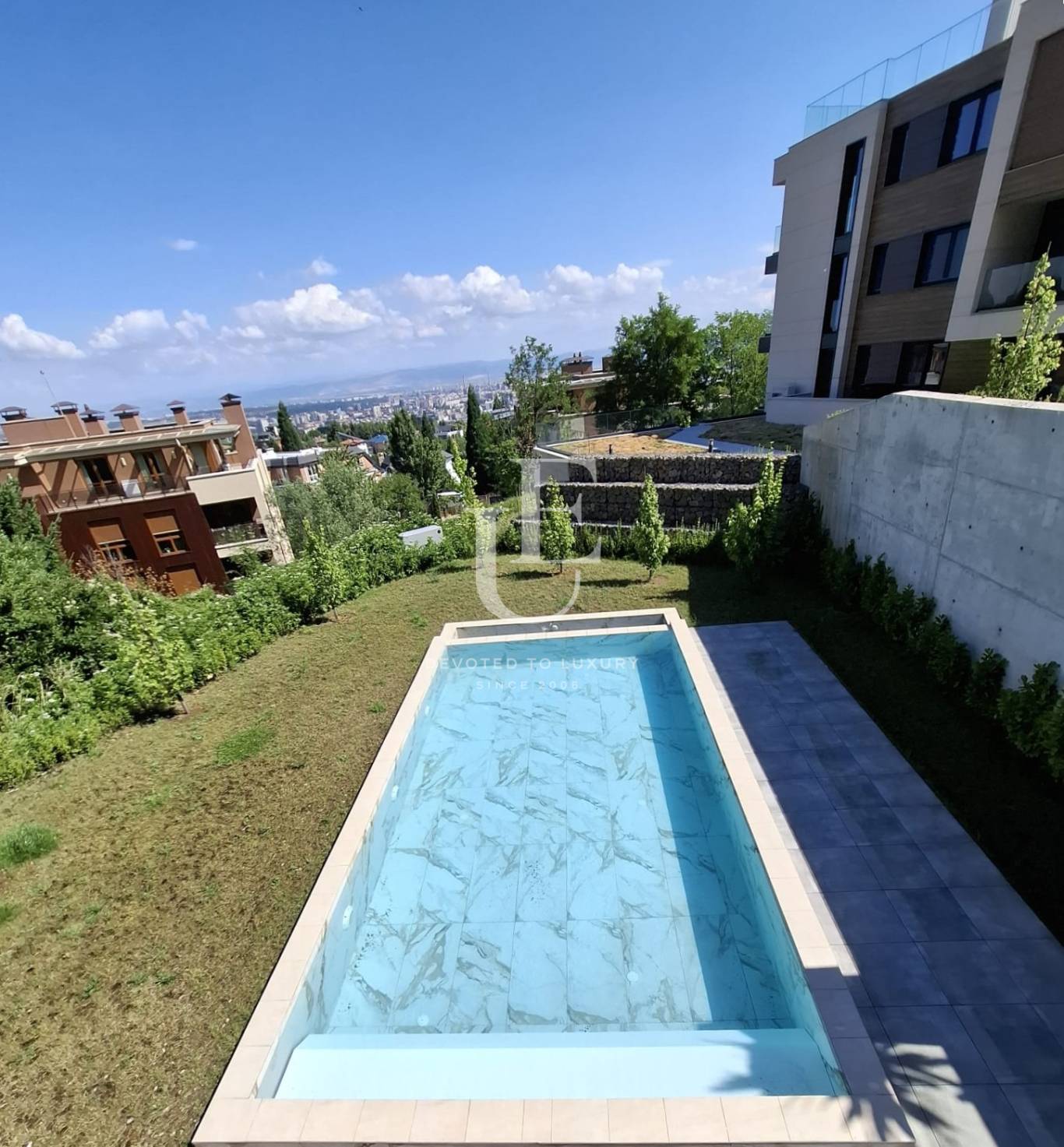 Unique Estates is pleased to present to your attention an elegant duplex apartment with the feeling of a private house, featuring its own garden and swimming pool, located in a picturesque and prestigious gated complex in Boyana. The property is distributed over two levels and has a built-up area of 341 sq.m.