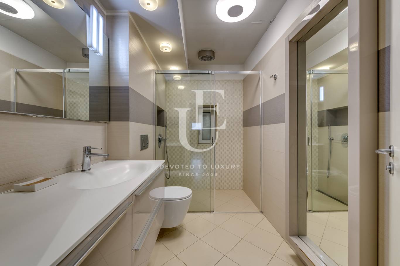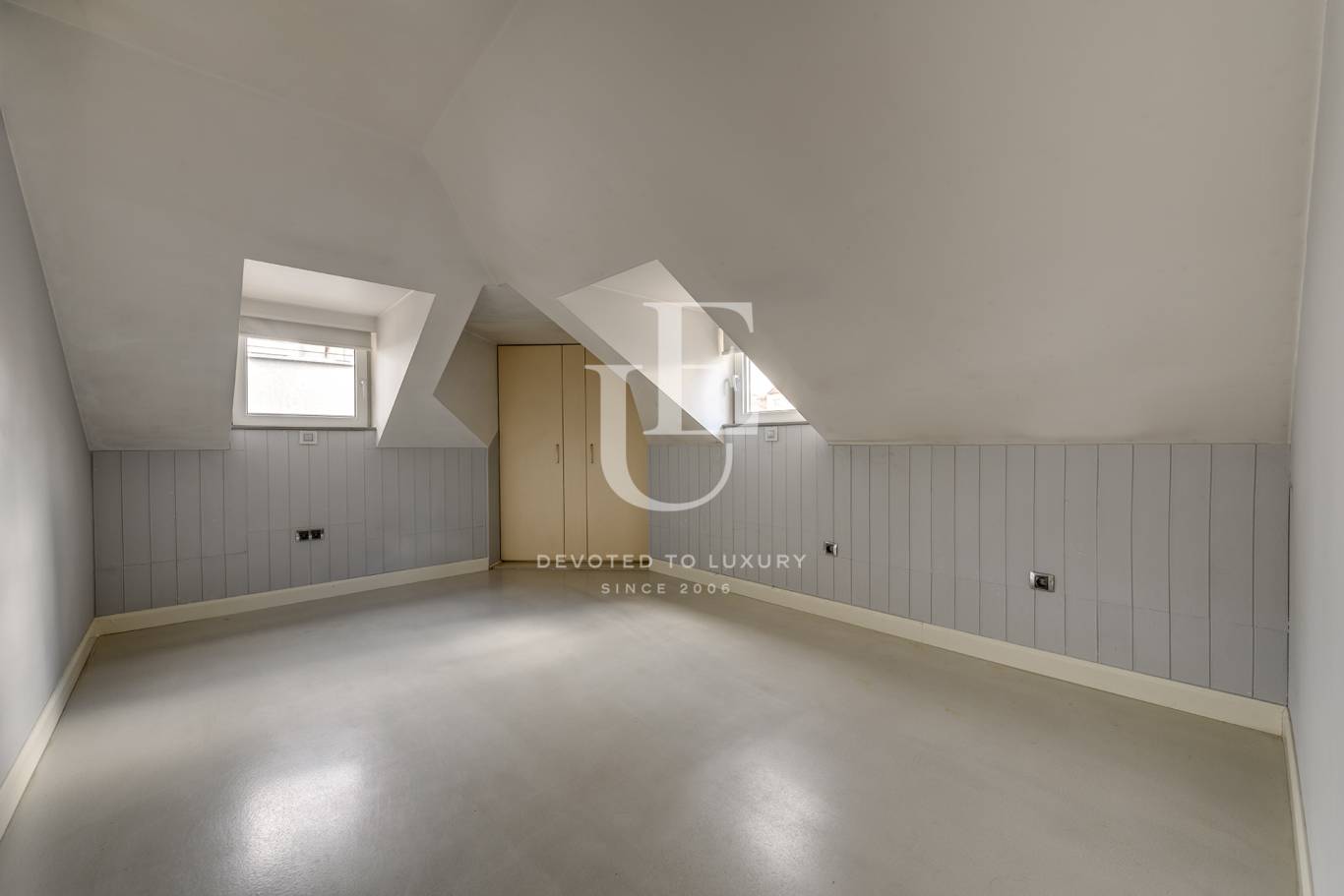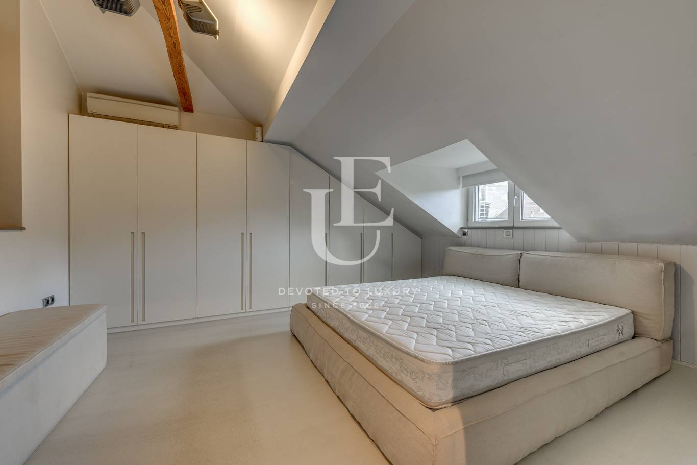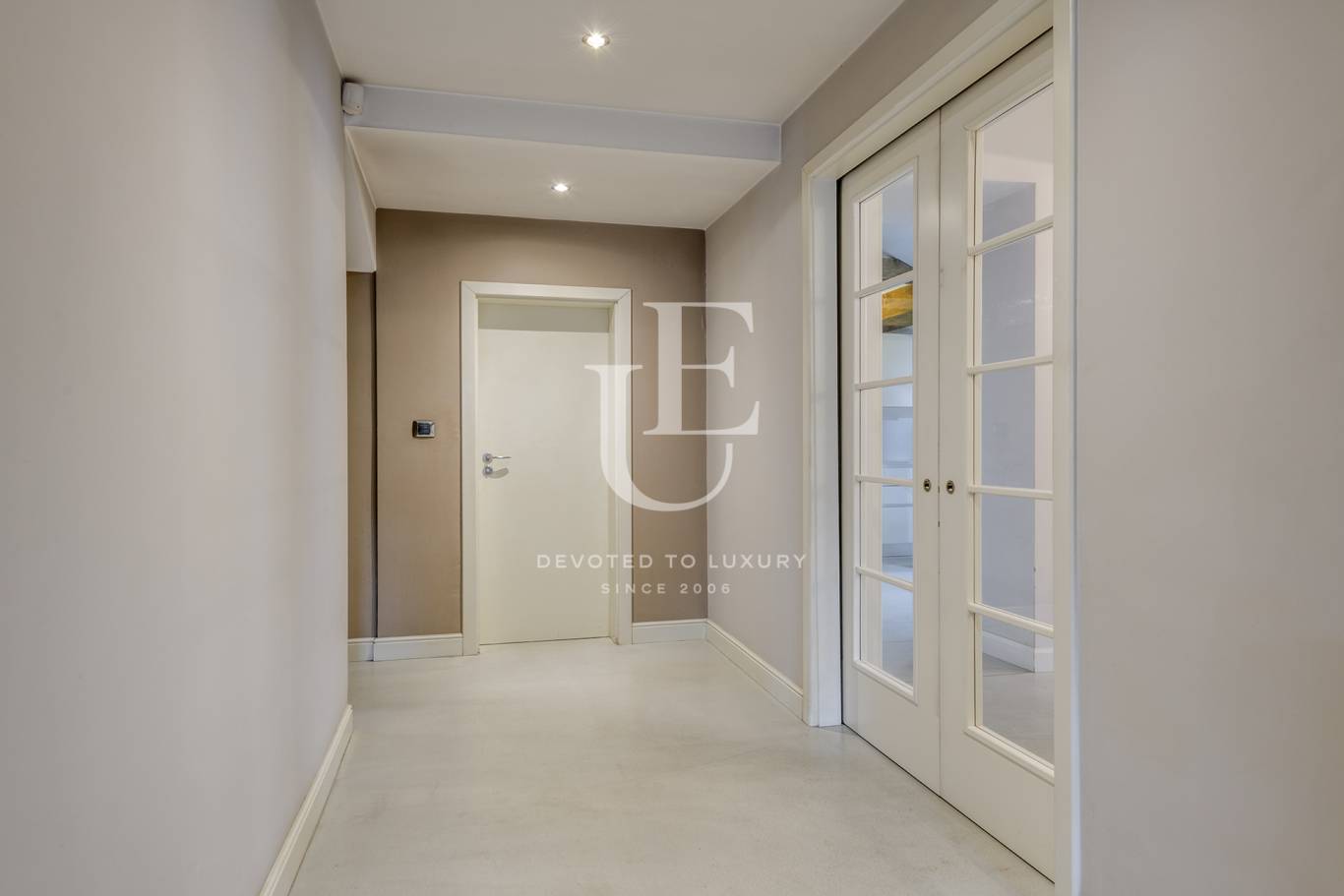 The apartment occupies the third and top floor of an aristocratic, beautiful building. It is the only residence on the floor, well laid out, bright, with excellently utilized spaces. There are only slight sloped ceilings in the bedrooms, compensated by greater height in the central parts of the rooms. Heating is provided by air conditioners and electric radiators. The entrance is beautifully renovated with controlled access. Parking lot -100 euro per month.