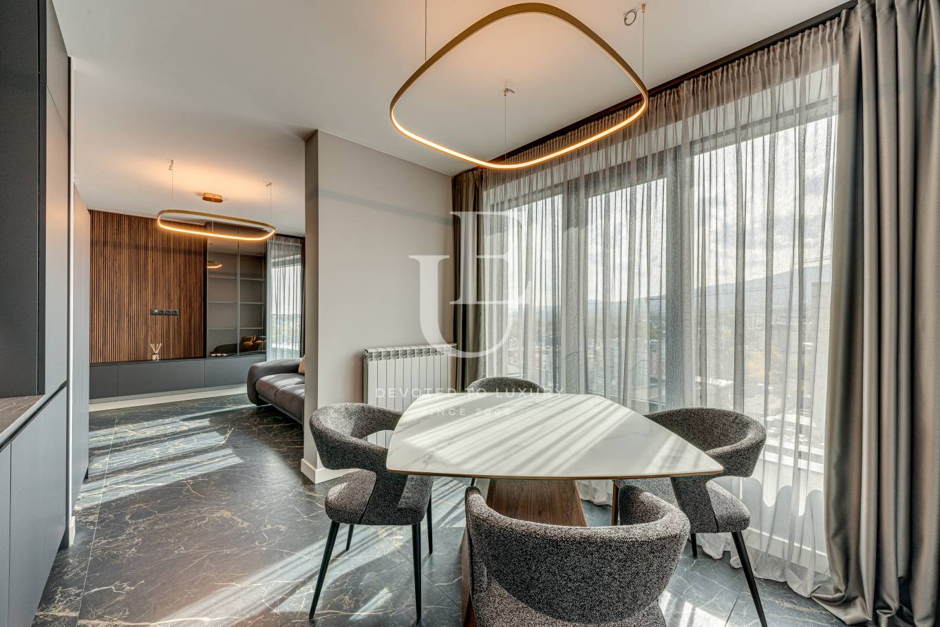 The property is situated on the 12th floor in the prestigious Krastova Vada district and features a fully southern exposure, flooding the rooms with natural light and offering fantastic panoramic views of the mountain. The building boasts impeccable maintenance, modern architecture, and a state-of-the-art controlled access system ensuring comfort and security.