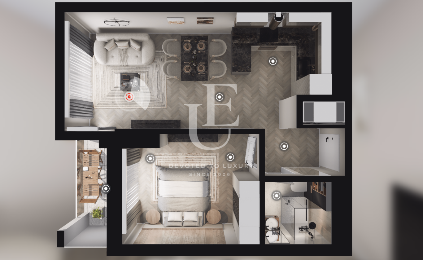 Downtown, Sofia Apartment, Cement and gypsum plasters Area: 75 sq.m Floor: 2 / 7 1 Bedrooms, 1 Bathrooms