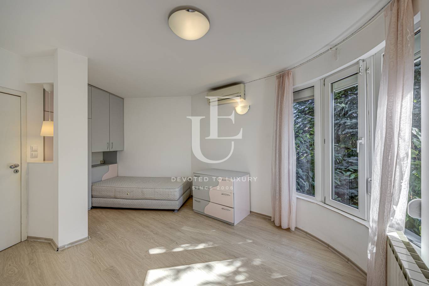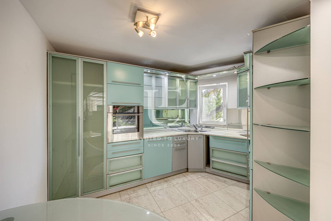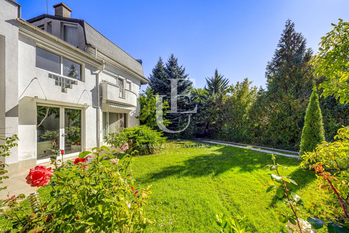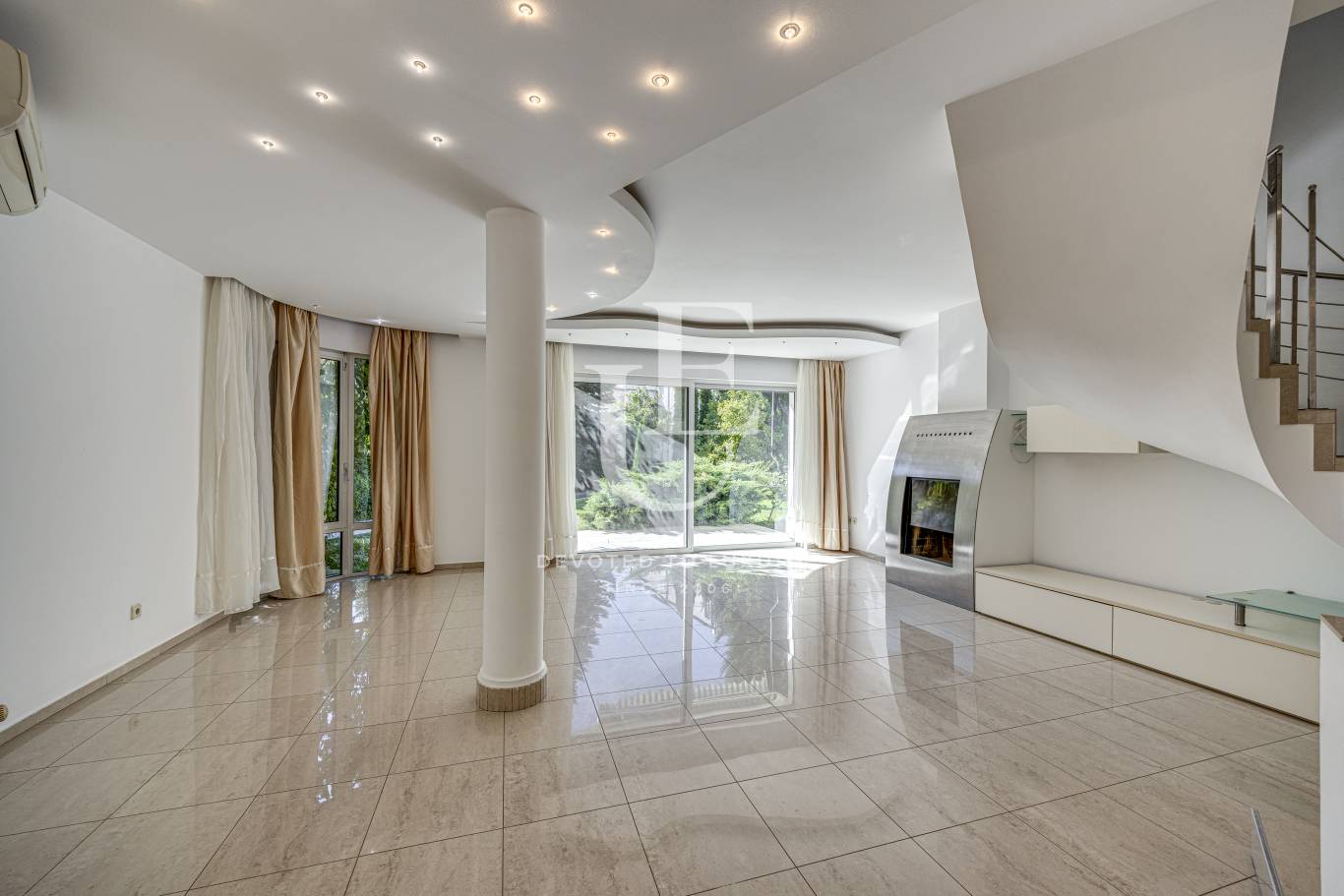 Unique Estates offers to your attention a separate part of a single-family house with a separate entrance and its own parking space. The property is spread over 250 sq m. and has a spacious bright living room with a fireplace, three bedrooms, three bathrooms, a pool, a sauna and a beautiful well-kept garden, overlooking the mountain. It is located near Ring Mall and has direct access to the ring road. The house has a separate studio/office with a separate entrance, which can be rented at an additional cost.