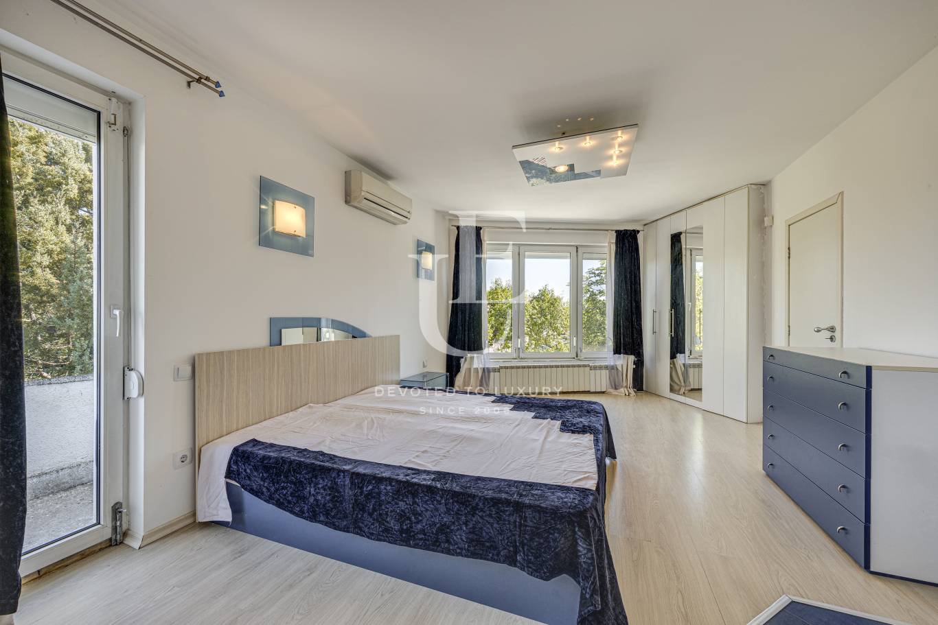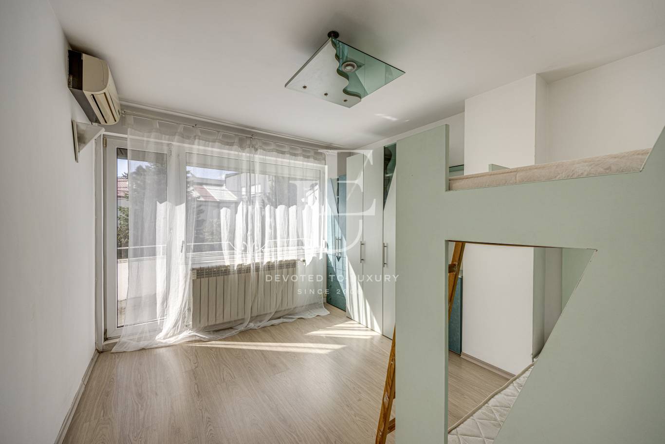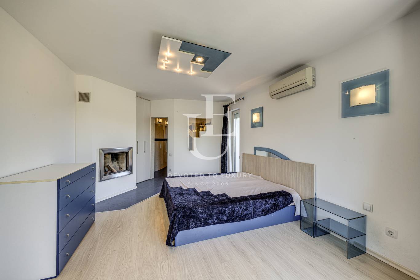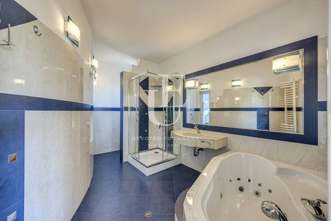 Unique Estates offers to your attention a separate part of a single-family house with a separate entrance and its own parking space. The property is spread over 250 sq m. and has a spacious bright living room with a fireplace, three bedrooms, three bathrooms, a pool, a sauna and a beautiful well-kept garden, overlooking the mountain. It is located near Ring Mall and has direct access to the ring road. The house has a separate studio/office with a separate entrance, which can be rented at an additional cost.