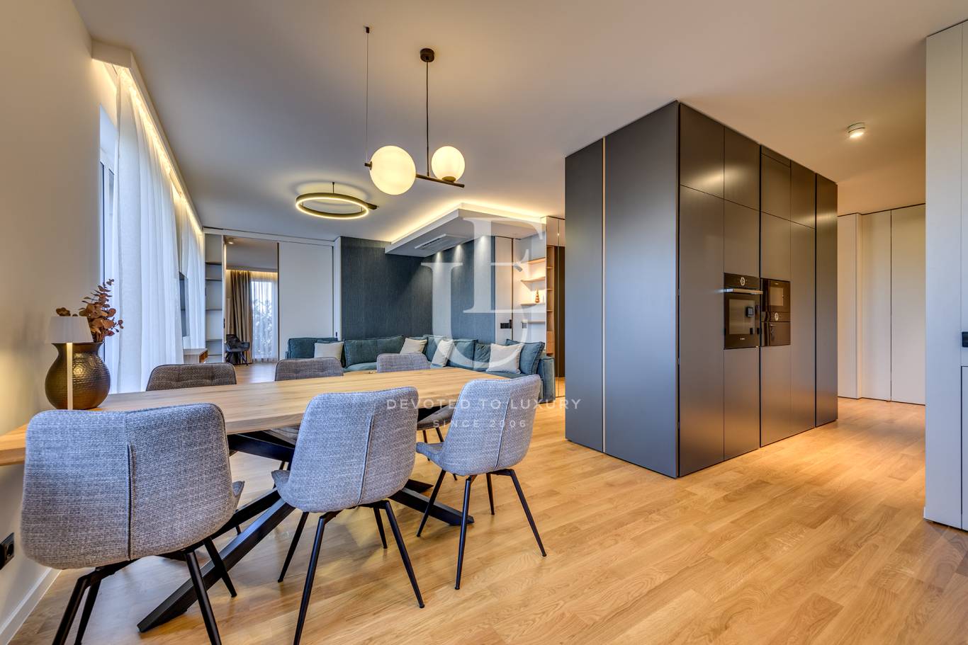 The apartment has a functional layout, stylishly furnished and equipped. The two smaller bedrooms and the lounge area will be furnished according to the needs of the first tenant.
