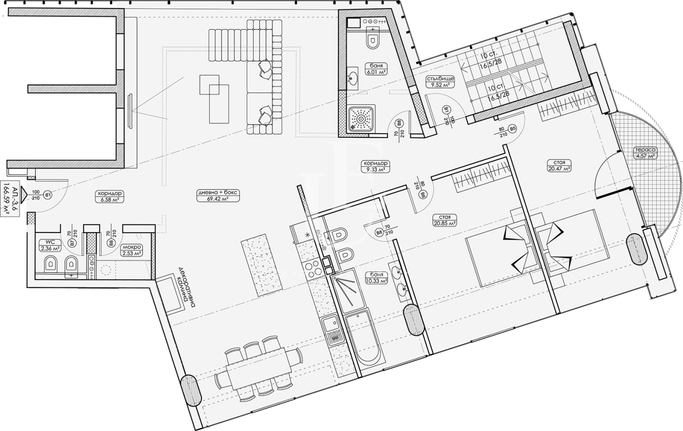 Unique Estates is pleased to present a furnished three-bedroom apartment located on the fourth floor with a total area of 221.72 sq.m., situated in a modern residential project featuring a fitness center, spa area, and swimming pool. The building stands out with its impressive architecture, glass façade, spacious living areas, and panoramic views of Vitosha Mountain and the city. All apartments benefit from southern exposure, ensuring exceptional natural light.