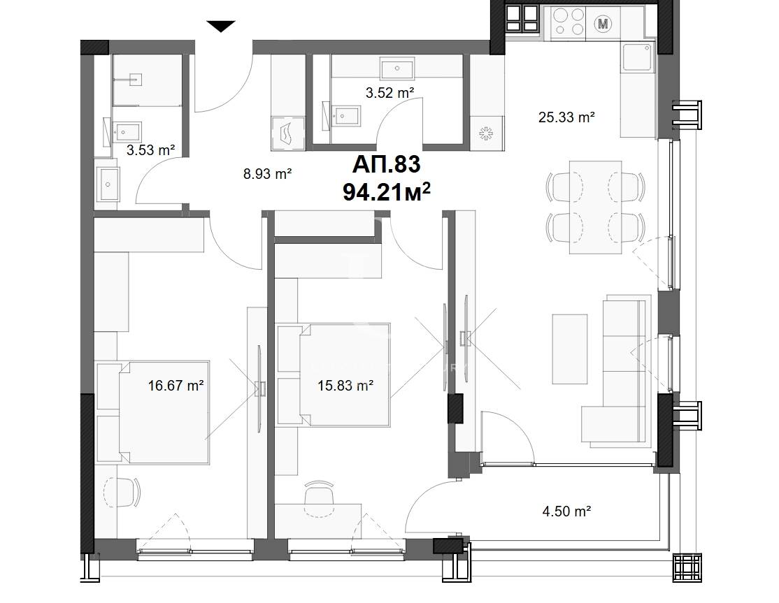 Unique Estates presents to your attention a three-room apartment in a newly built residential building that combines a social environment, family comfort, and uncompromising quality of execution in the Ovcha Kupel district. A modern lifestyle and comfort, located in the dynamically developing part of the Ovcha Kupel 1 district, the complex offers a harmonious balance between urban dynamics and privacy in nature. High-class aluminum joinery Reynaers with triple glazing (6+4+4) type "four seasons" and high-class Mako fittings are provided. The apartment will be completed and handed over to putty and screed, armored entrance doors with decorative frames, and installed switches and sockets. The heating will be from the CHP, supplemented by built-in air conditioning routes in each room and discreetly separated areas for outdoor units. Over 5,000 sq m of professionally landscaped areas, forming a "green oasis" and spacious park-terraces for relaxation. Underground parking on two levels with controlled access and direct hot connection to the apartments. The underground parking space is priced at 26,000 Euros including VAT, and the double ones are priced at 46,000 Euros including VAT. The common areas have a representative lobby with a waiting area, specialized areas for storing strollers and bicycles, as well as an area for pets. A shopping area with direct access to a supermarket, pharmacy, restaurant, and cafe is also provided. The apartment is only a 4-minute walk from two metro stations, "Ovcha Kupel" and "Mizia/NBU". Completion deadline 2028.