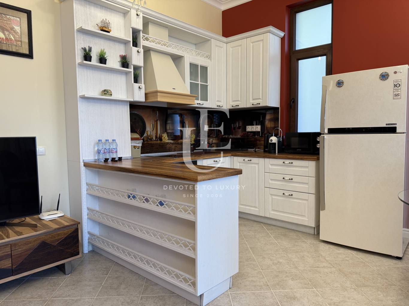 The apartment impresses with a functional layout and refined atmosphere. The spacious living area offers direct access to a cozy veranda and private garden, creating the feeling of a true seaside home. The kitchen is equipped with high-end appliances, while the bedroom combines comfort and modern design. The fully renovated bathroom enhances the sense of luxury and convenience. The apartment is fully furnished and ready for immediate use.
